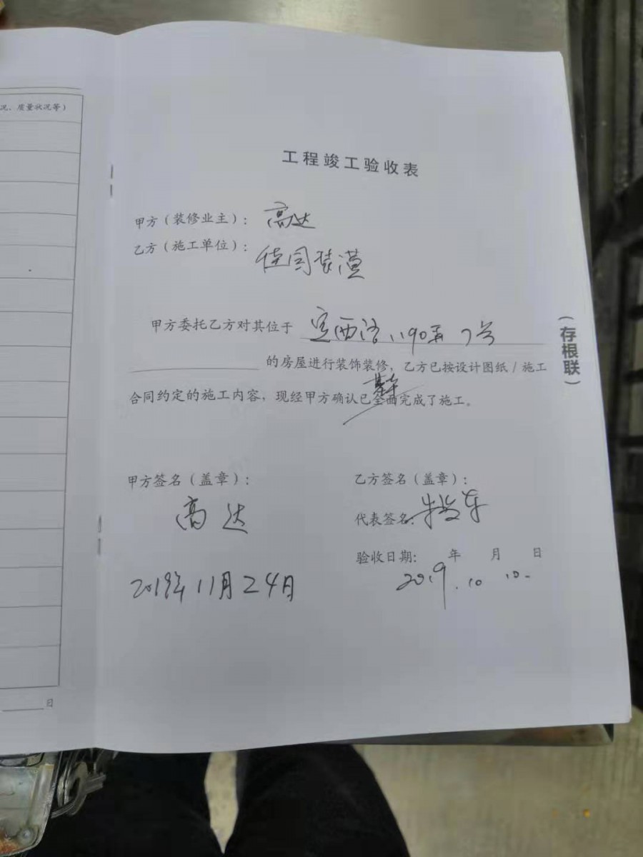 11月24日,佳園公司拒絕把驗(yàn)收表的客戶聯(lián)給我,因?yàn)榧褕@公司倒寫日期44天。