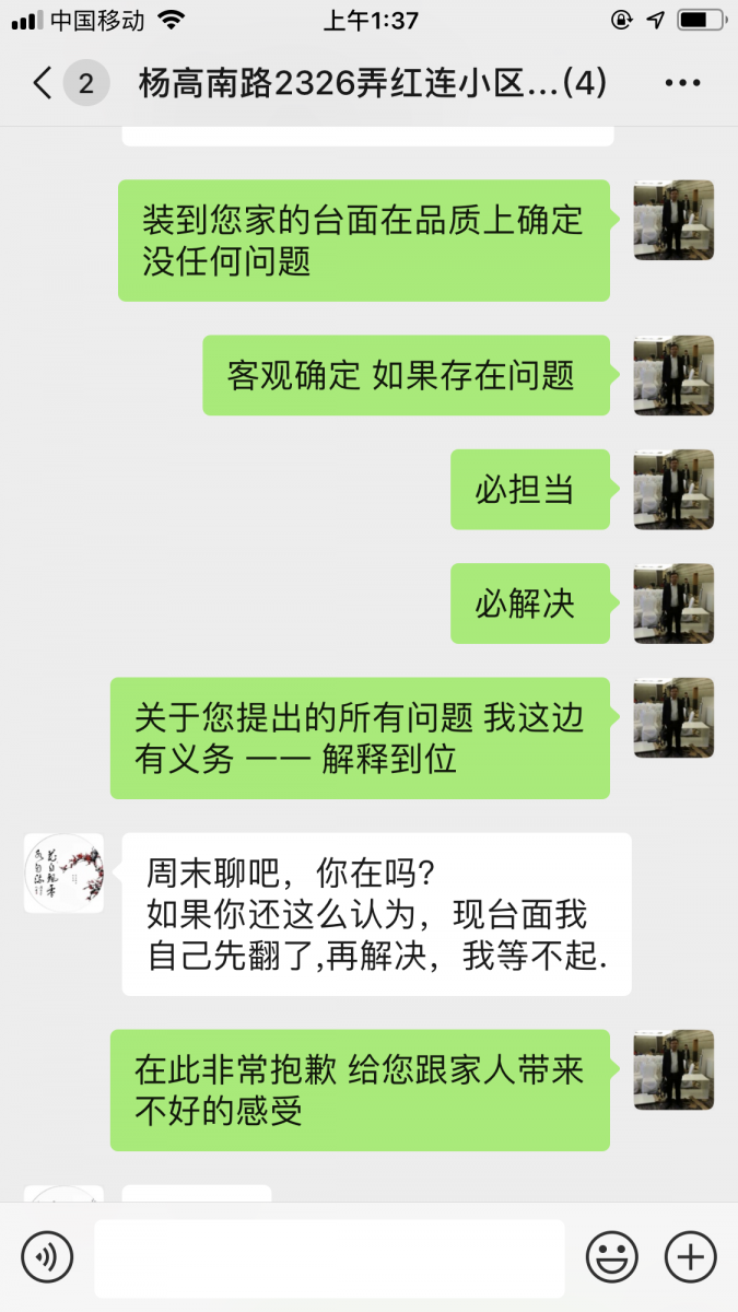 | 投訴類型 | 施工質(zhì)量 | 投訴人 | 張** | 被投訴單位 | 美約墅配 |