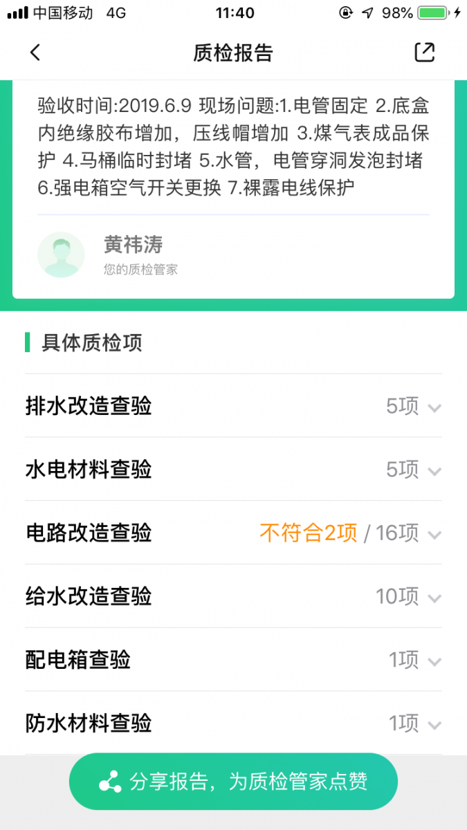 水電增項先斬后奏,沒經我確認費用直接排線,電路改造2處不合格沒改,開關安裝不合格;