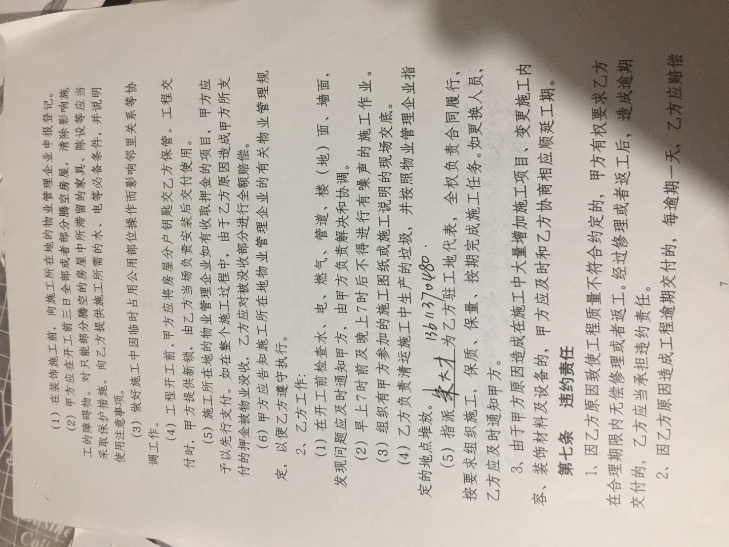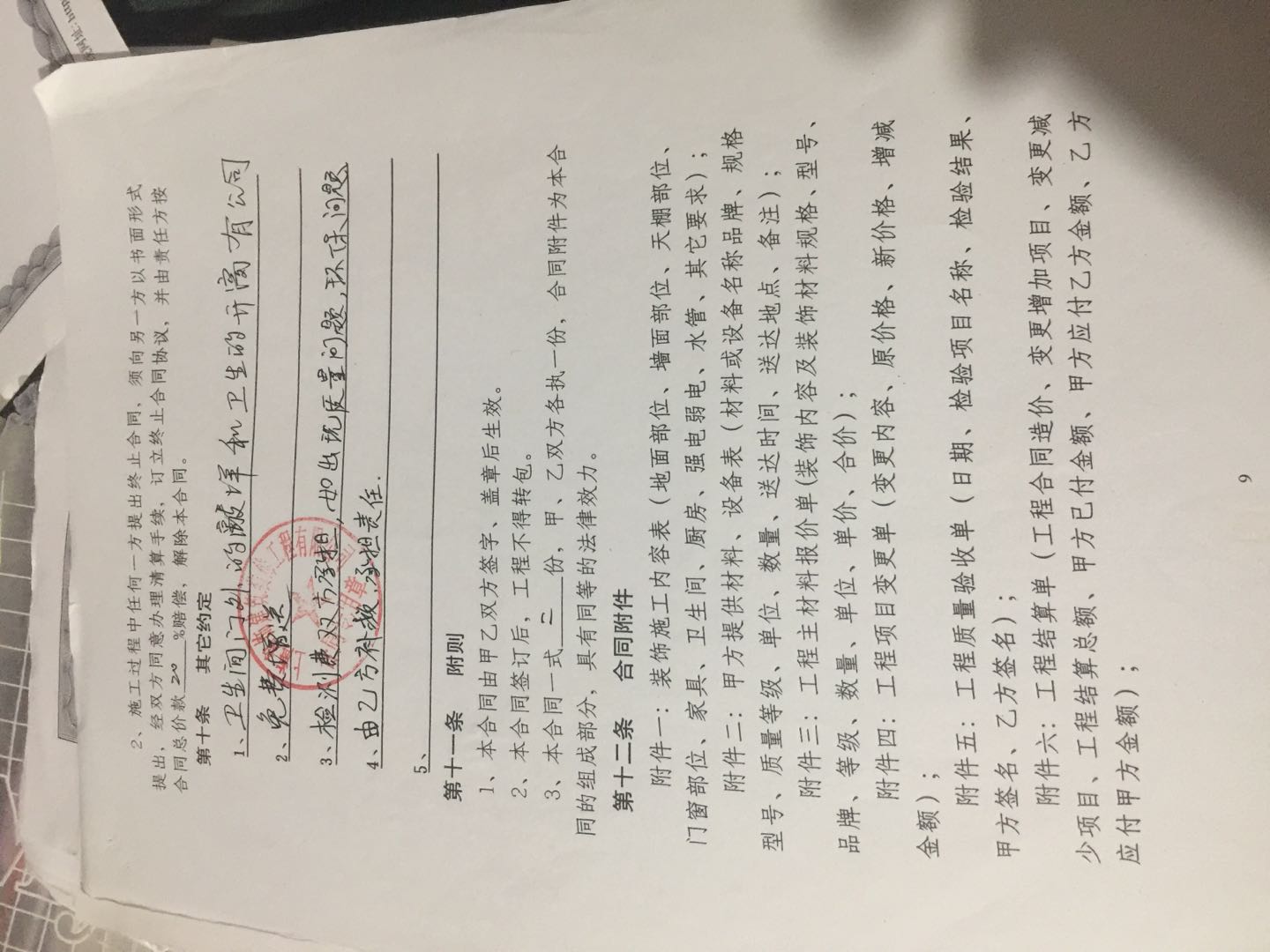 其他:墻面修補做到一半幾乎沒做,安裝階段的墻面裂縫一直沒補,各個縫隙的硅膠沒打,其他按合同約定提供的材料沒提供