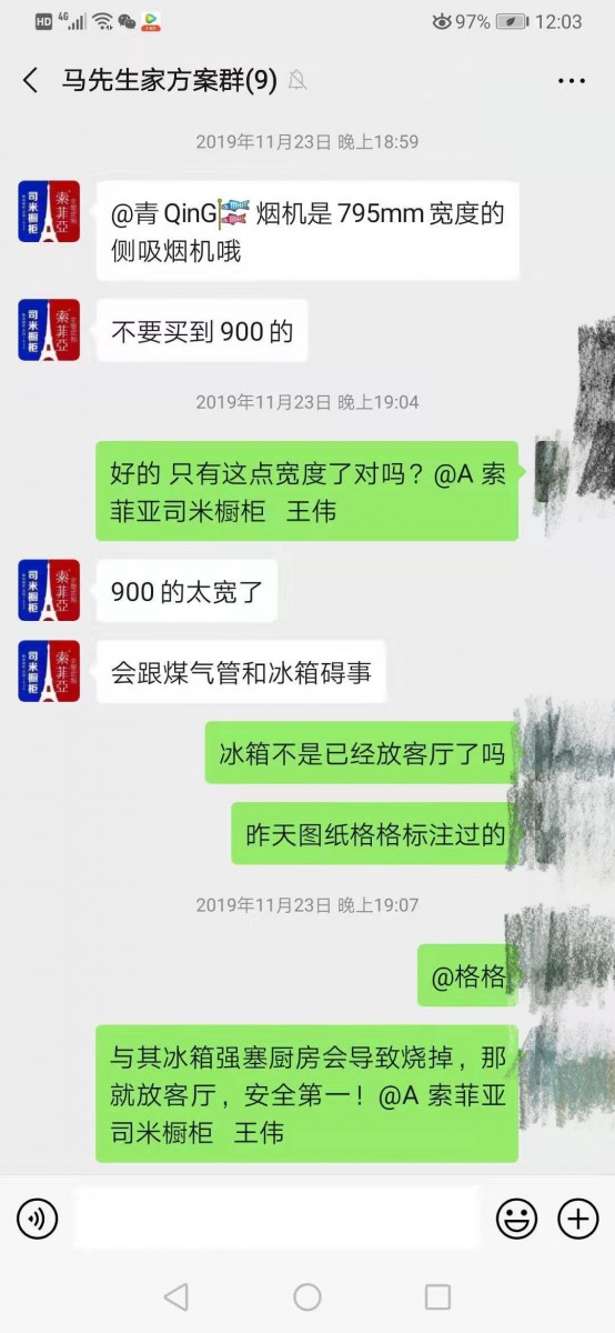 購買了司米的廚房櫥柜,由于設(shè)計師只提供了平面圖,沒有提供承諾的立體圖,導(dǎo)致成品櫥柜與脫排油煙機間距過大(設(shè)計圖70mm,售后實際測量150mm),與當(dāng)初所陳述的有差異,影響美觀。