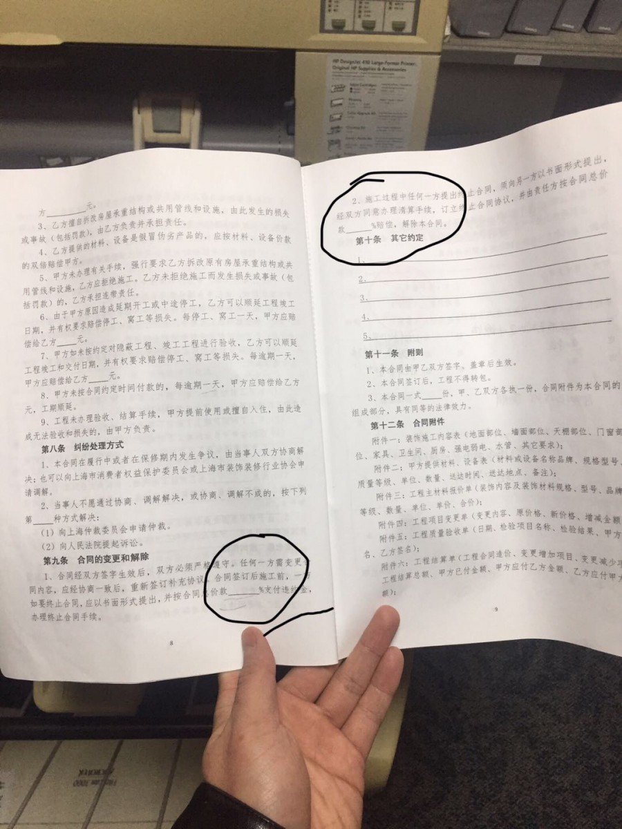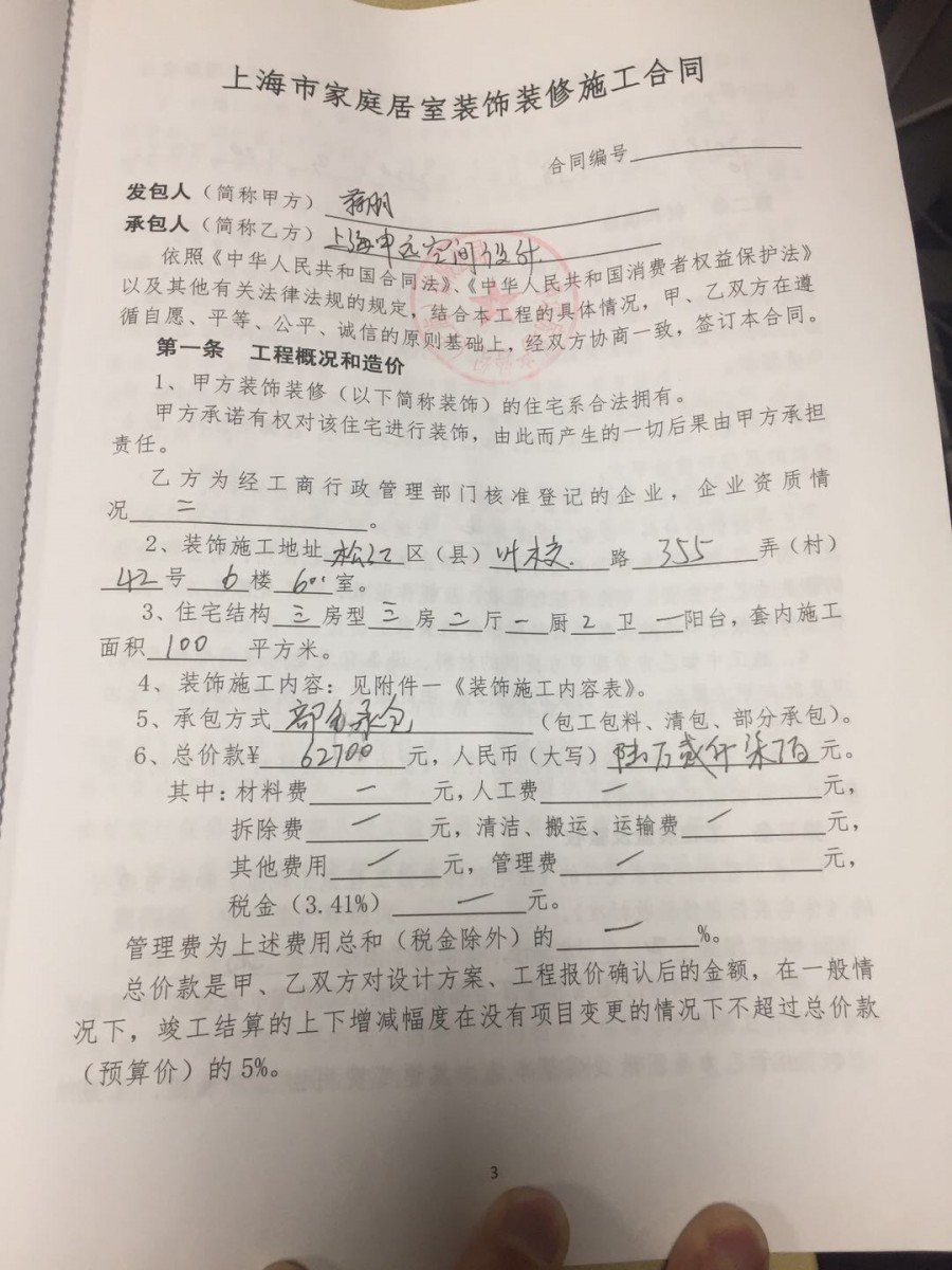 2019年11月從申遠(yuǎn)房地產(chǎn)經(jīng)紀(jì)(上海)有限公司買的位于二手毛坯房。12月簽訂的裝修合同,裝修也是與這個(gè)中介公司簽訂的(實(shí)際是隔壁店鋪的奧彩裝潢來(lái)做)。第一批工程款支付了2萬(wàn),在敲完墻之后(合同有圖紙,實(shí)際沒(méi)有提供過(guò)任何圖紙)水電改造之前,奧彩裝飾方老板提出地面不平,鋪強(qiáng)化地板需要加做水泥砂漿找平80一平(這一項(xiàng)報(bào)價(jià)里沒(méi)有,但之前也沒(méi)有說(shuō)過(guò))。有增項(xiàng)套路,我強(qiáng)烈要求結(jié)算敲墻的費(fèi)用并退錢,他們要30%違約金,我說(shuō)合同沒(méi)有規(guī)定違約金(見(jiàn)照片)。他們又無(wú)賴的說(shuō)這是行規(guī)。協(xié)商無(wú)果,我報(bào)警處理無(wú)果,只好妥協(xié)讓繼續(xù)水電改造。