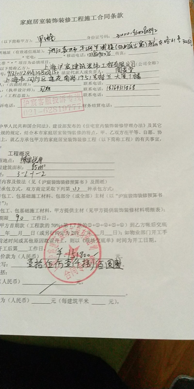 | 裝修面積 | 85m2 | 投訴人手機 | 1338609**** | 被投訴人手機 | 1826431**** |