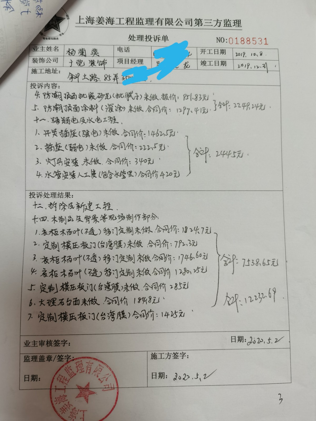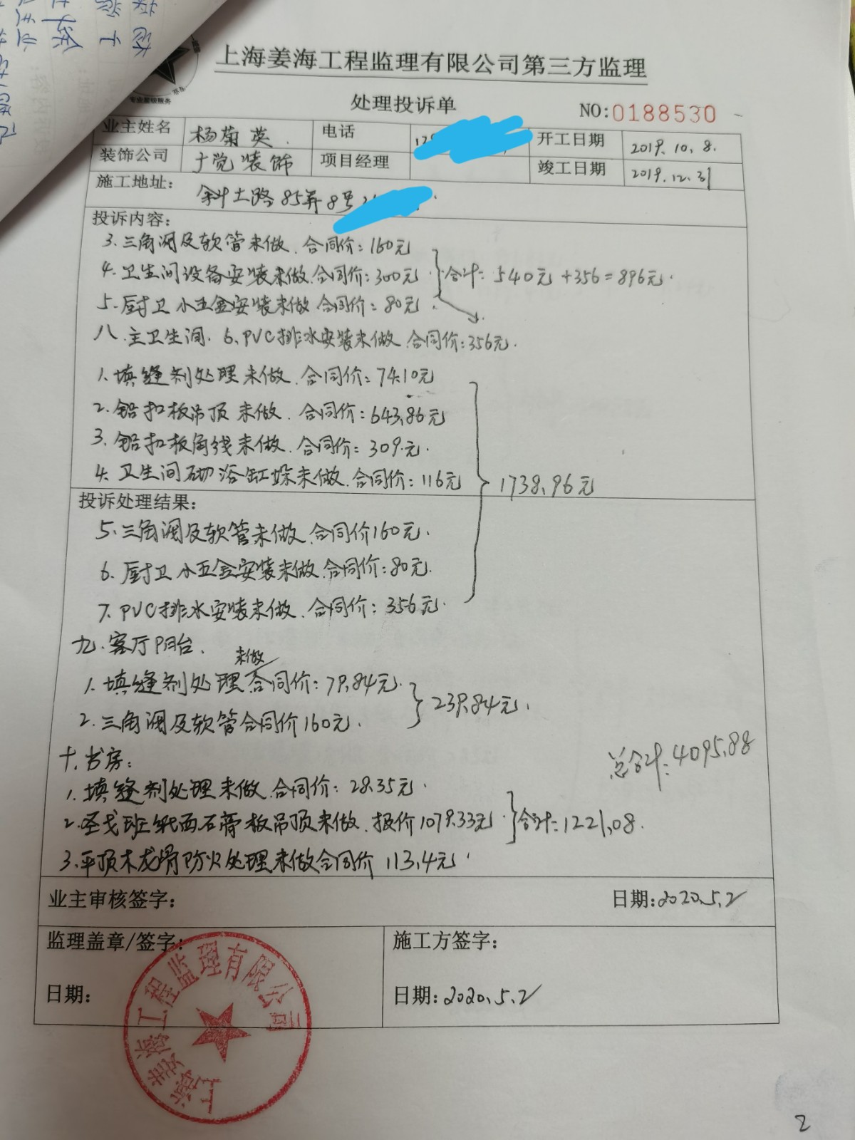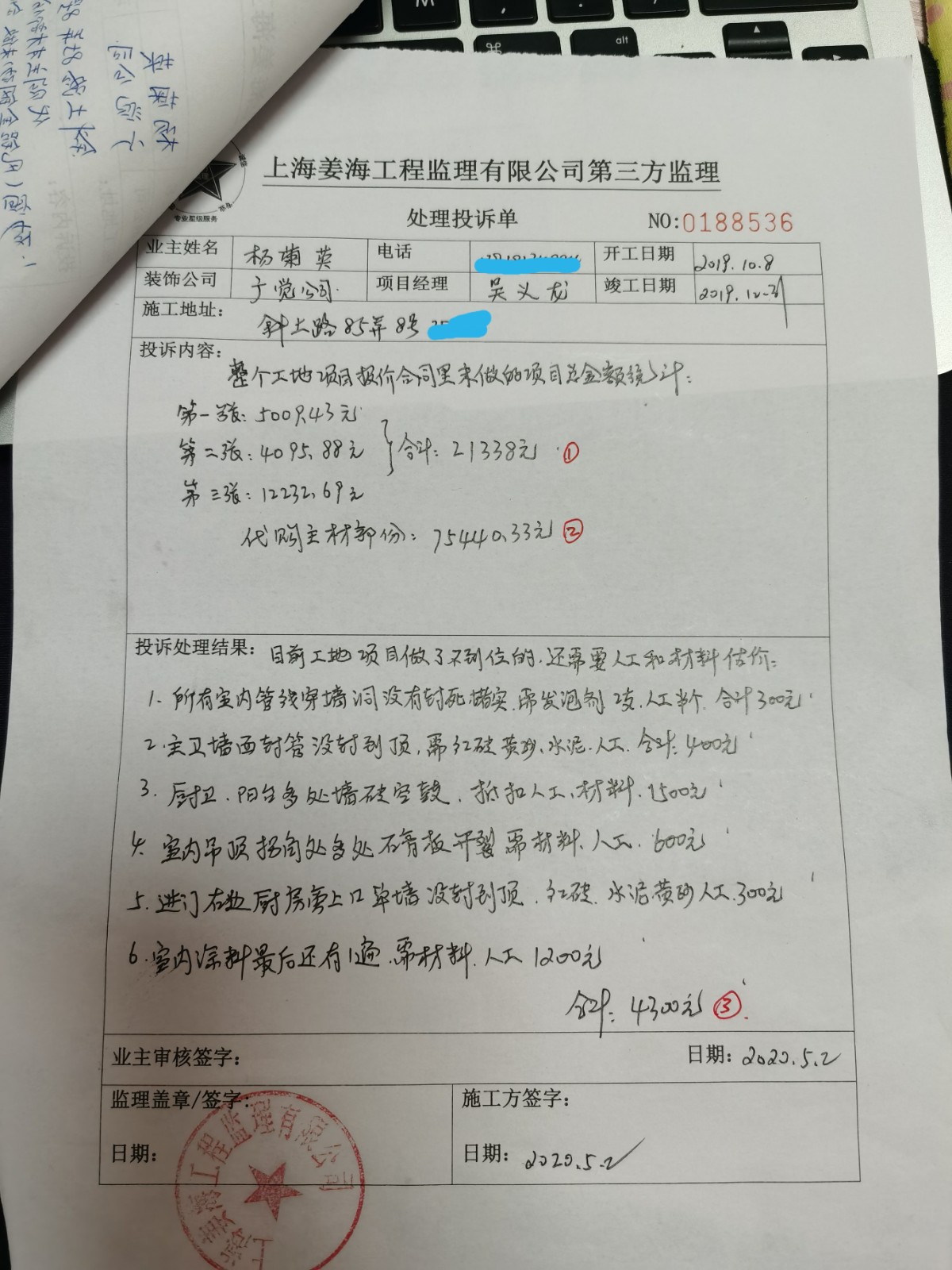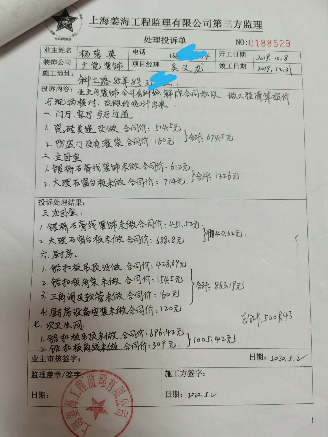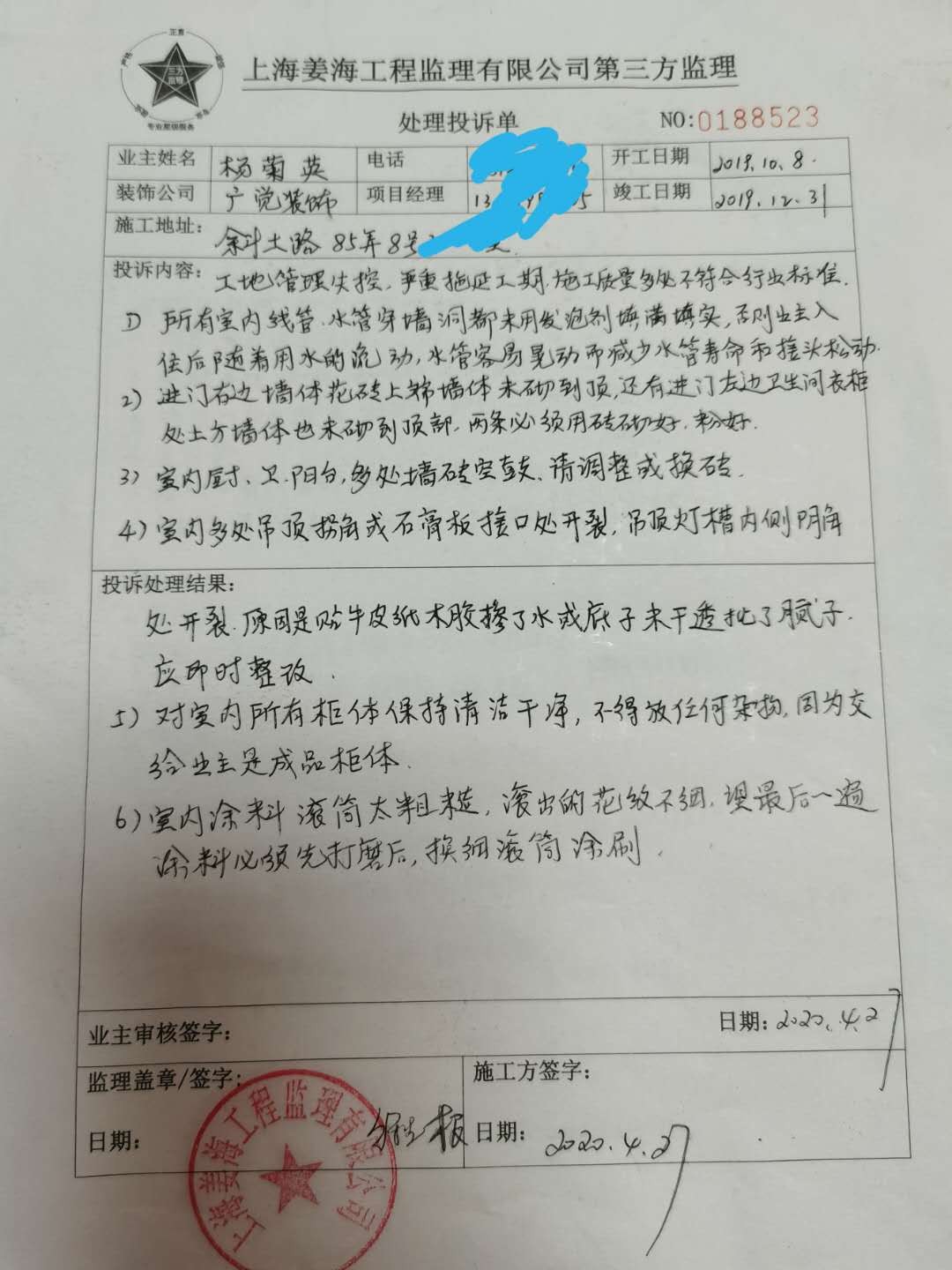 | 裝修面積 | 140m2 | 投訴人手機 | 1381813**** | 被投訴人手機 | 1582164**** |