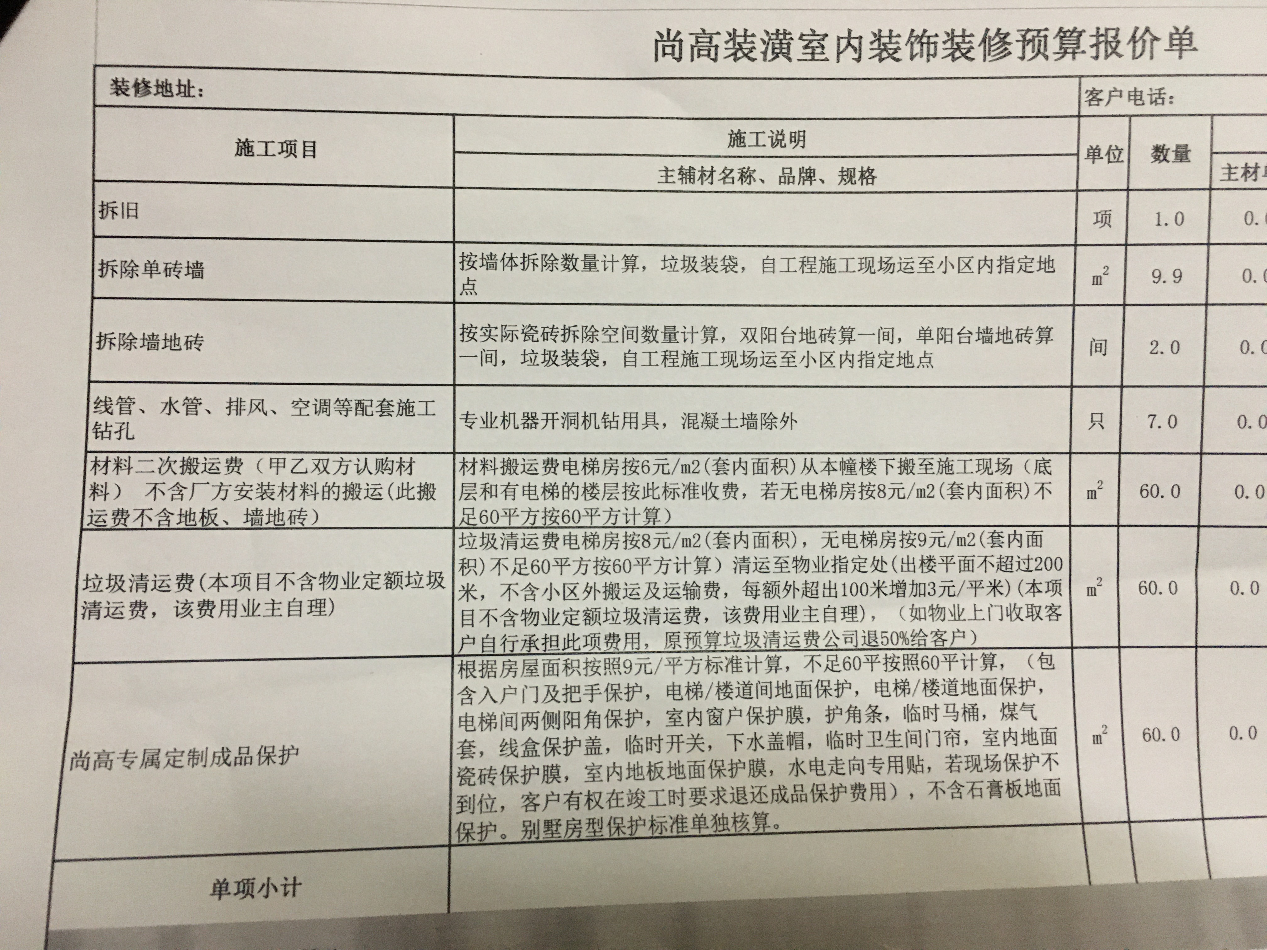 今天是裝修第一天,裝修公司跟我說漏算了拆家里地板的錢、鏟空鼓層后的水泥黃沙錢、餐廳地磚錢,第一天就說漏算了五六千要做增項(合同價6.8萬,第一天就上浮超過了5%)。