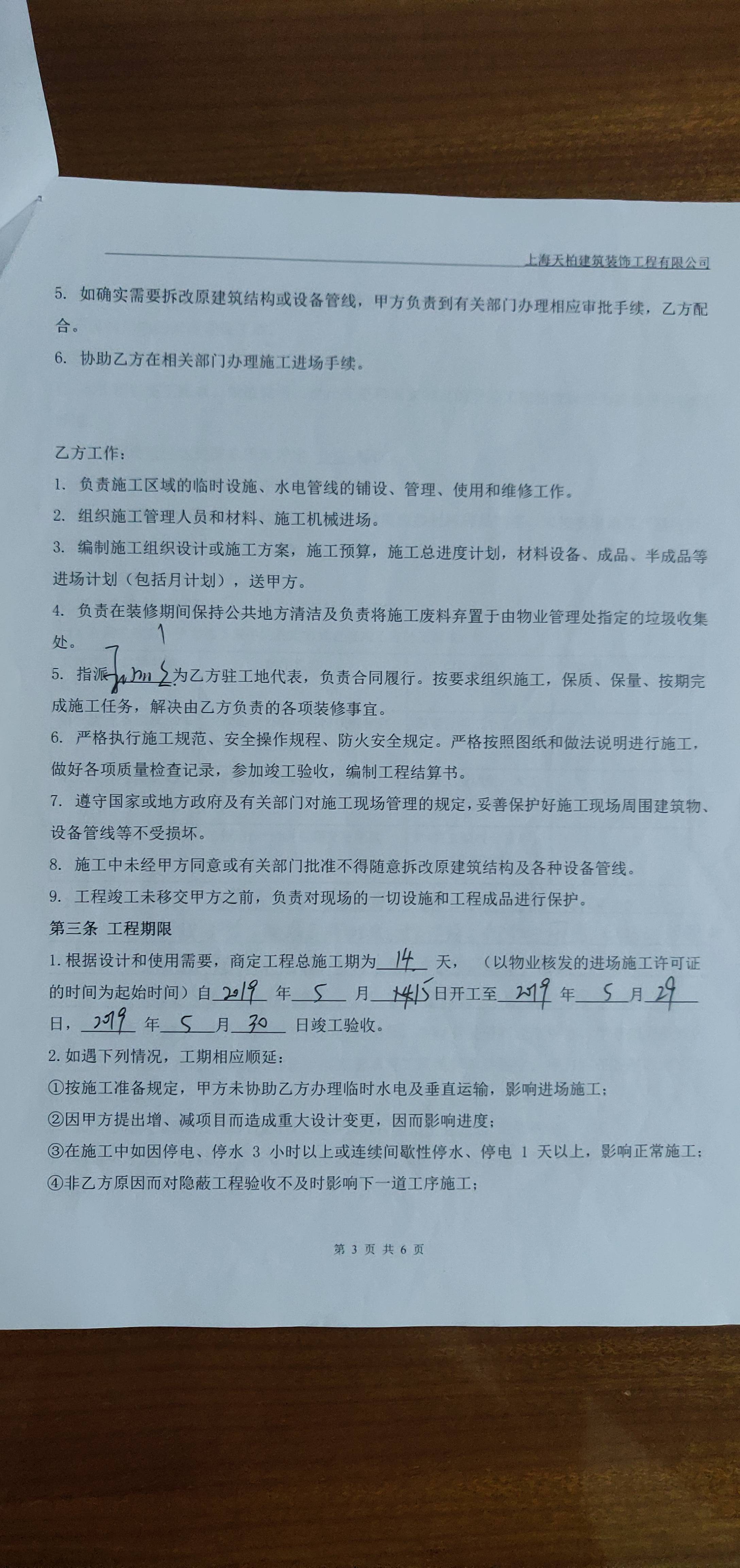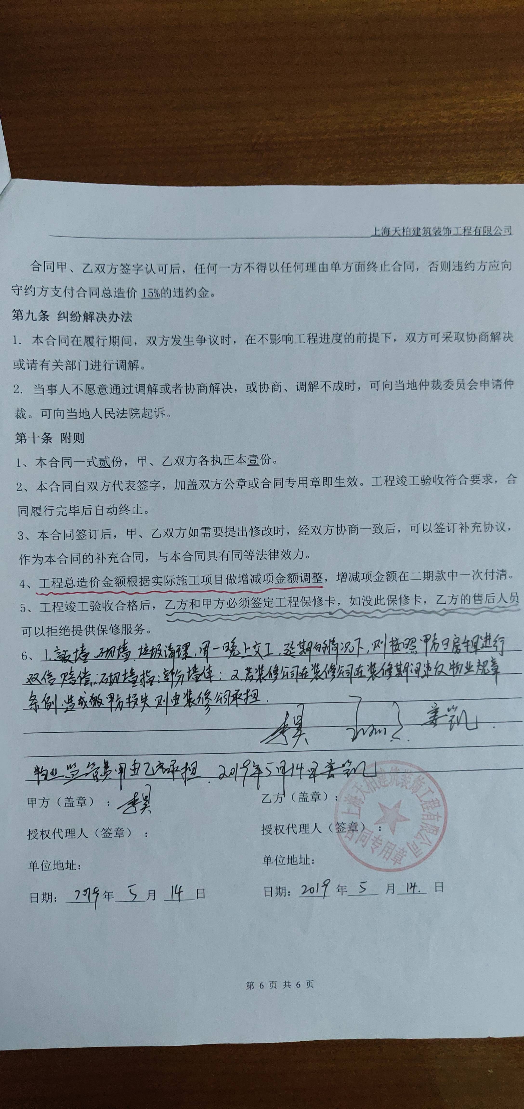 工程于6月2日完成,與合同中簽訂的5月30日相比延期三天。之后一直聯(lián)系公司現(xiàn)場(chǎng)計(jì)算實(shí)際工作量方便計(jì)算工程總造價(jià),一直拖至7月份才與裝修工人汪先留、設(shè)計(jì)師姜?jiǎng)P、負(fù)責(zé)人王明明同時(shí)在場(chǎng)確認(rèn)完全部施工量,并有書(shū)面記錄。按實(shí)際工作量計(jì)算,我僅需支付一萬(wàn)八千余元,可隨后公司方面拒絕退還多余工程款,且不愿承擔(dān)物業(yè)要求的2400元監(jiān)管費(fèi)。之后曾多次與天柏公司負(fù)責(zé)人張經(jīng)心聯(lián)系溝通,且曾報(bào)過(guò)警希望張經(jīng)心出面解決問(wèn)題,無(wú)果。直至今年五月,終于見(jiàn)到張經(jīng)心并在天柏公司進(jìn)行溝通,但公司拒絕退還多余工程款一萬(wàn)余元。