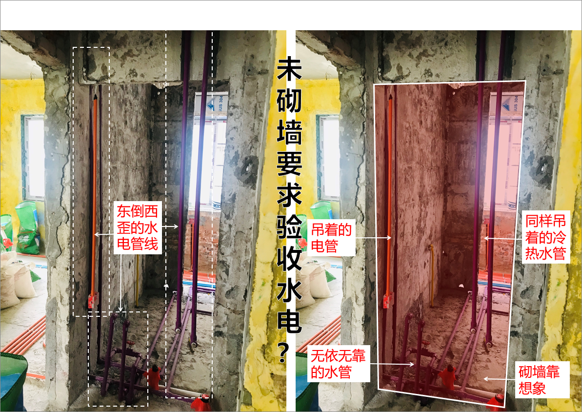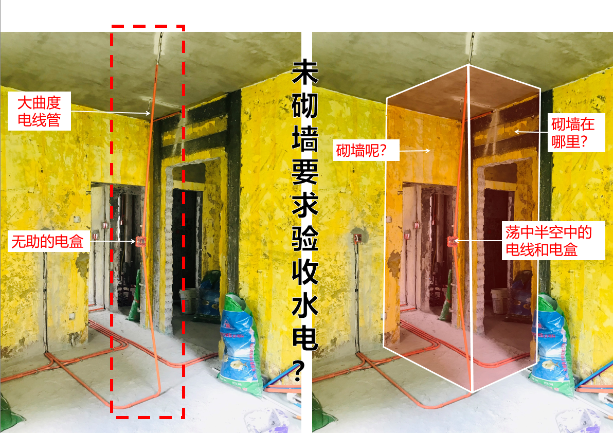 2.沒(méi)有砌墻就做水電,不符合正常裝修施工順序。水電線管會(huì)給之后砌墻工程難度增加,且容易造成水電線管的損壞。目前溝通情況施工方拒絕完成砌墻工作。