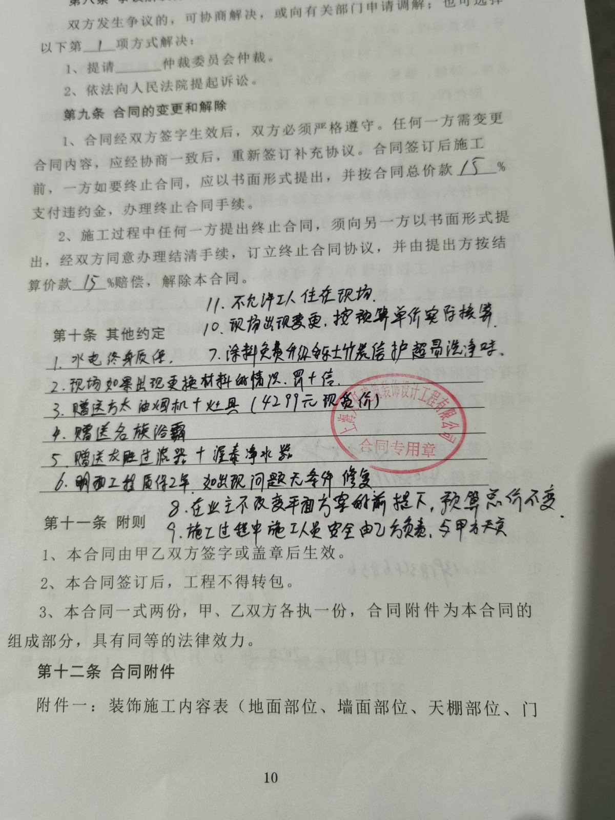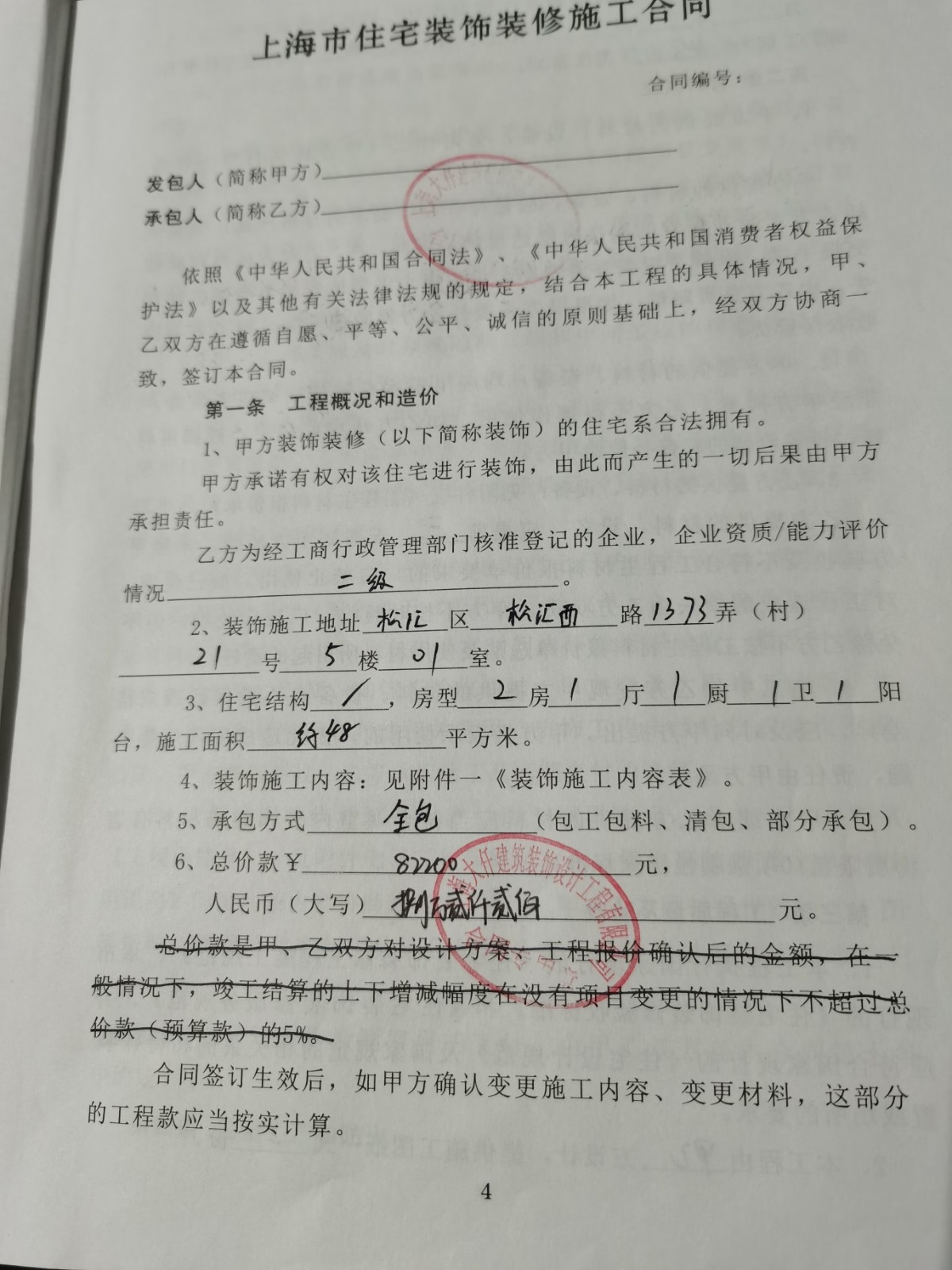 通過齊家網(wǎng)推薦,本人于2020年6月18日和上海松江大仟國際設(shè)計工程公司簽訂全包合同,總價8萬2千2百元。合同明確規(guī)定,在業(yè)主不改變平面方案的情況下,總價不變。還和設(shè)計師約定,材料損耗費(fèi)算入總價,以后不增加任何費(fèi)用,并將此條寫入合同。