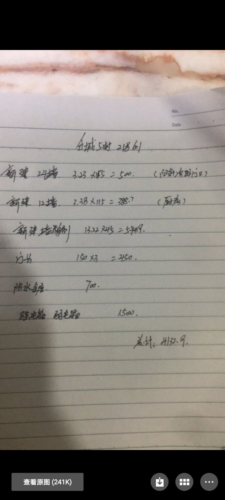 簽訂合同后,分別支付了16440元給大仟公司和齊家網(wǎng),共計32880元。開工后,施工隊長提出各種增項加錢,包括衛(wèi)生間砌墻全屋防水,強(qiáng)弱電箱,門頭,移門門柱,鋁合金門窗面積增加等費(fèi)用,共計6300多元。我為了工期順利,支付了其中的2800多元。在水電完成后,又提出水電的增項,包括開槽打洞等費(fèi)用共計3800多元。
