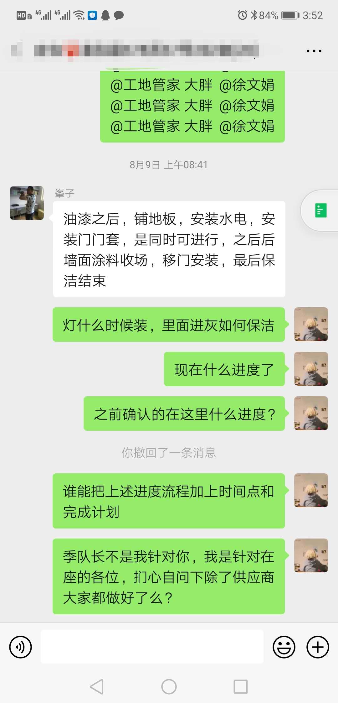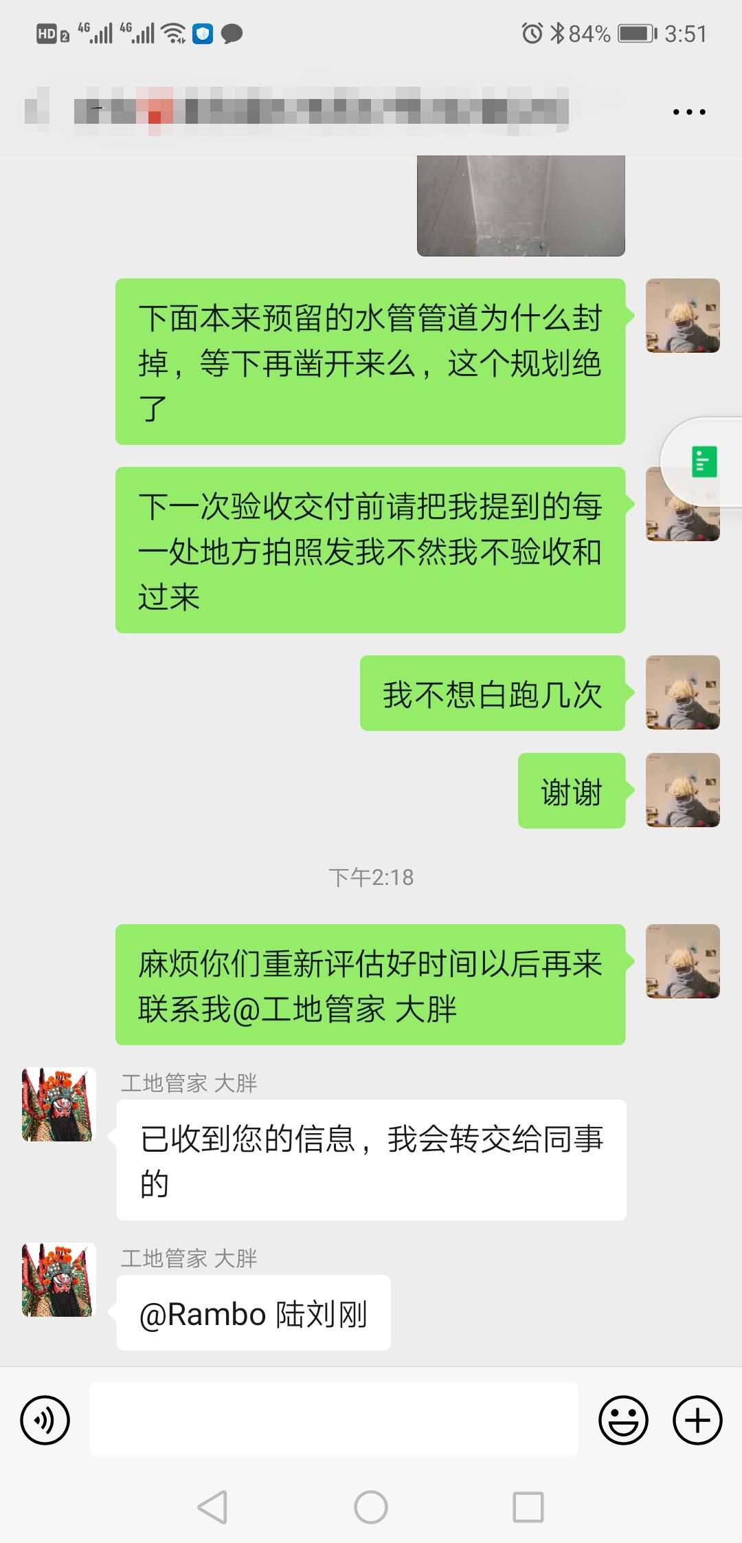 項目4/23開工,原計劃7/16交付,工地管家不作為,門店負責人推諉假裝熟視無睹