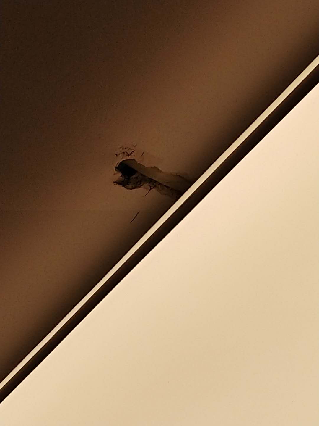 10、房間內燈具旁的吊頂的修復(上次安裝燈具,線太外面把頂部打了一條縫)