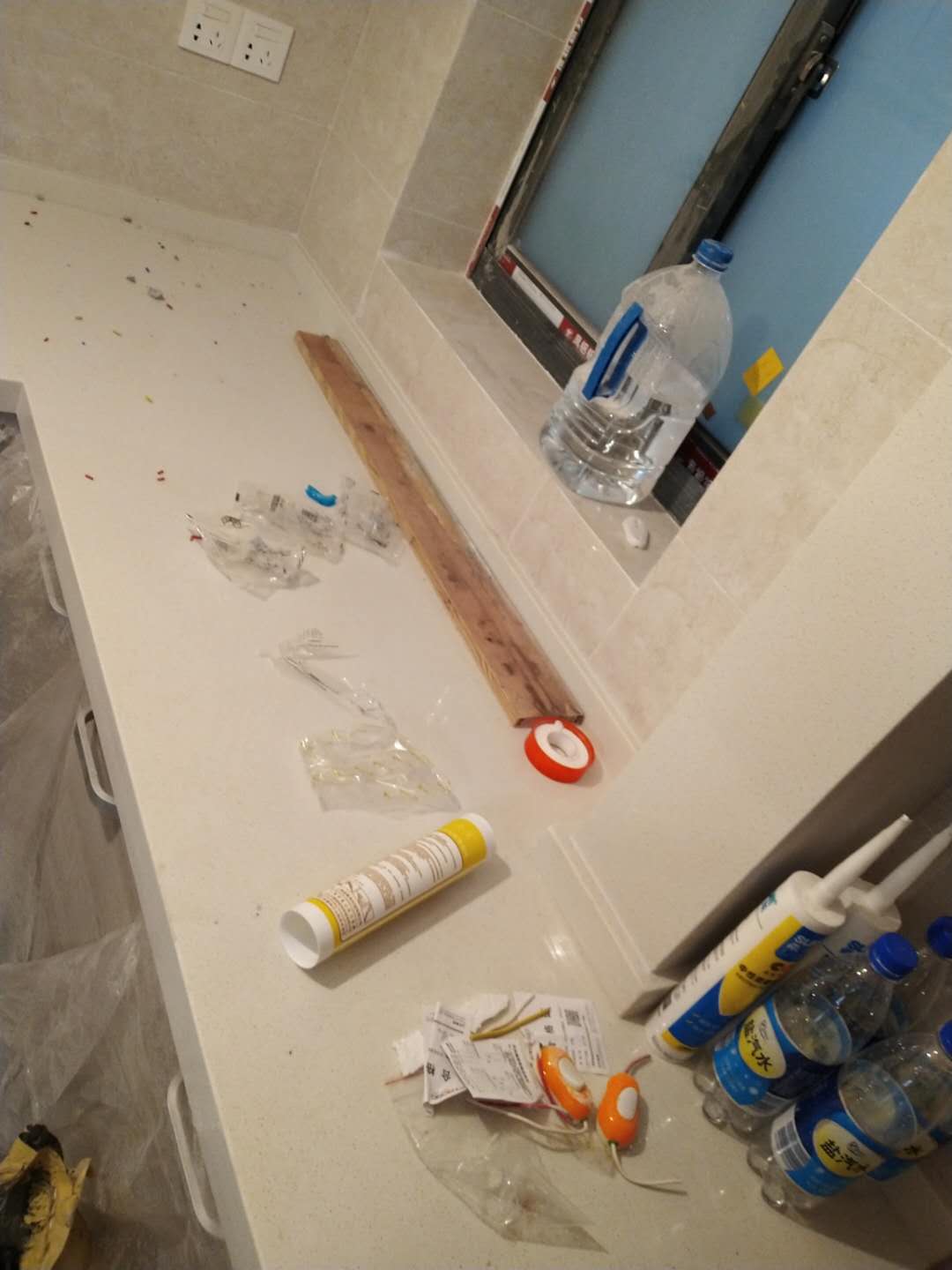 16,廚房下水管道的膠有點脫落需要重新膠水包一下