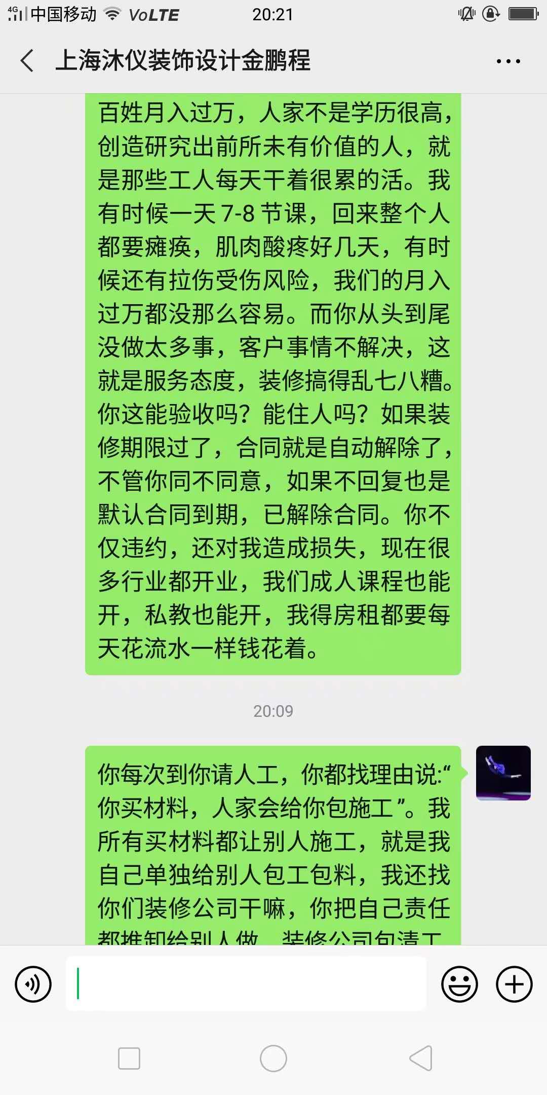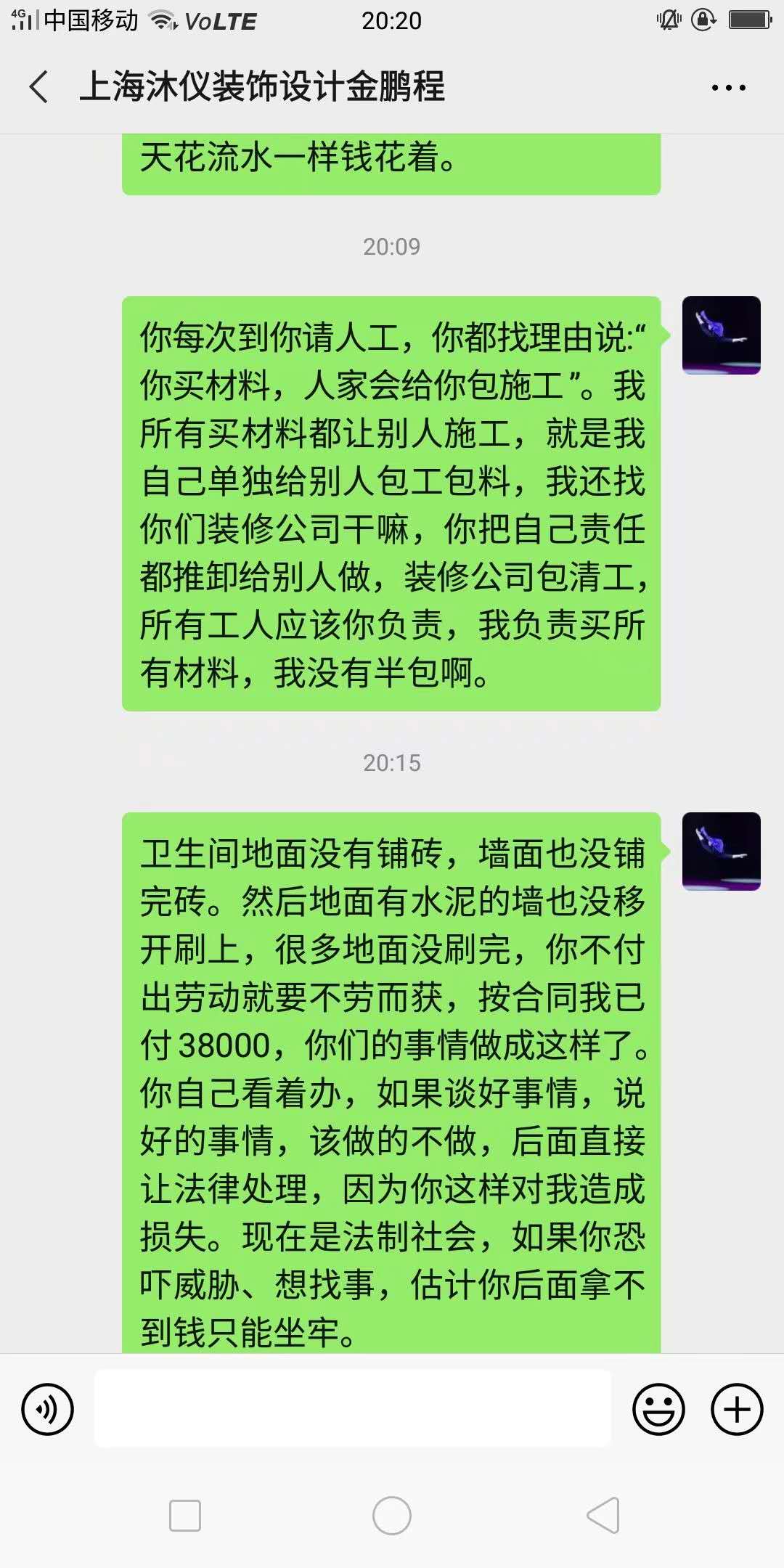 4、因裝修期間進(jìn)度緩慢,雙方略有爭議,但最終在我方已向裝修公司支付完相應(yīng)裝修款后,裝修公司未履行完裝修工作,還提出再給他們個(gè)把時(shí)間(此時(shí)早已超出合同工期時(shí)間,工期多拖一個(gè)月就導(dǎo)致我方租金、水電等損失過萬,同時(shí)也因未裝修完不能正常使用造成損夫無法估算),期間一直敲詐要加錢,不給錢就繼續(xù)拖延時(shí)間,應(yīng)付了事,我方未同意時(shí)裝修公司直接撤走裝修人員(此時(shí)2020年4月份,實(shí)際按60個(gè)工作日3月份就應(yīng)完工,此換算不計(jì)疫情影響的時(shí)間);