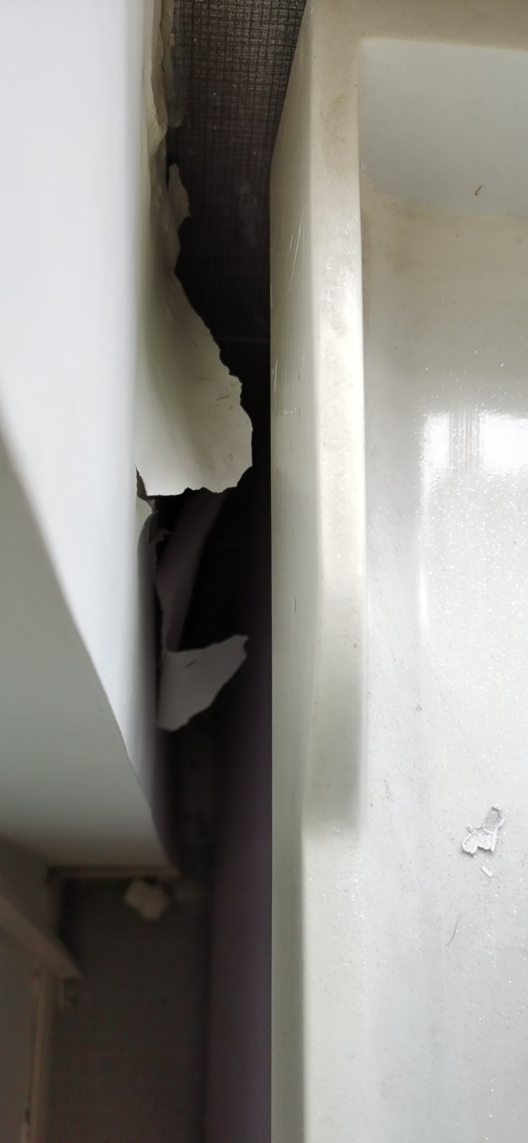 裝修一年后:1,防水施工質(zhì)量極差,墻面滲水嚴(yán)重。2,墻面涂料出現(xiàn)裂縫,墻面施工質(zhì)量極差。