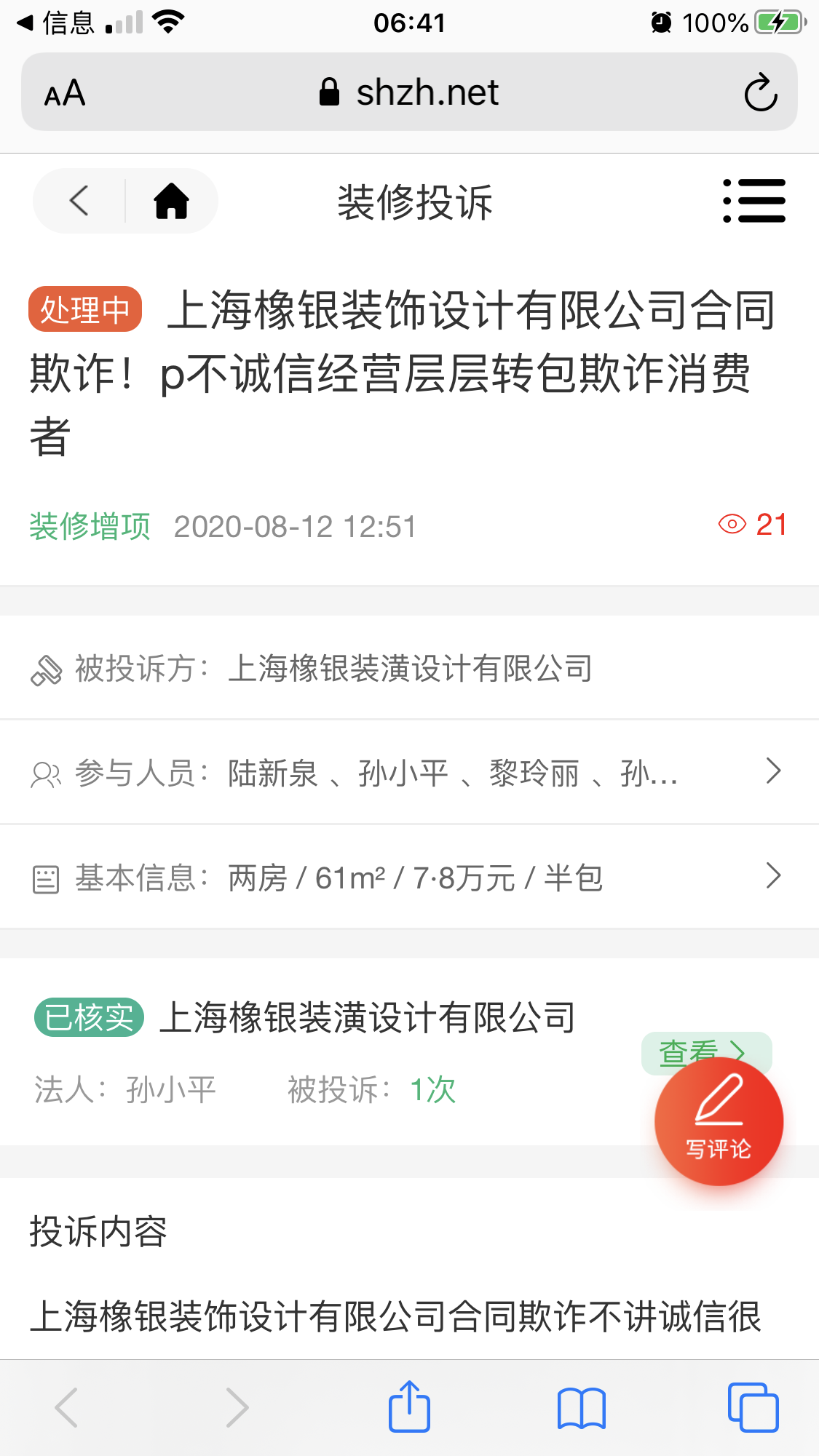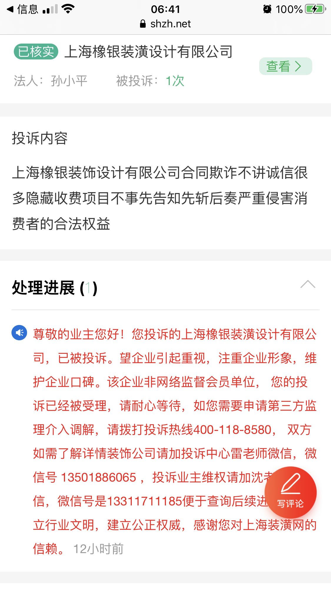 | 投訴類型 | 裝修增項 | 投訴人 | 苗** | 被投訴單位 | 上海橡銀裝潢設(shè)計有限公司 |