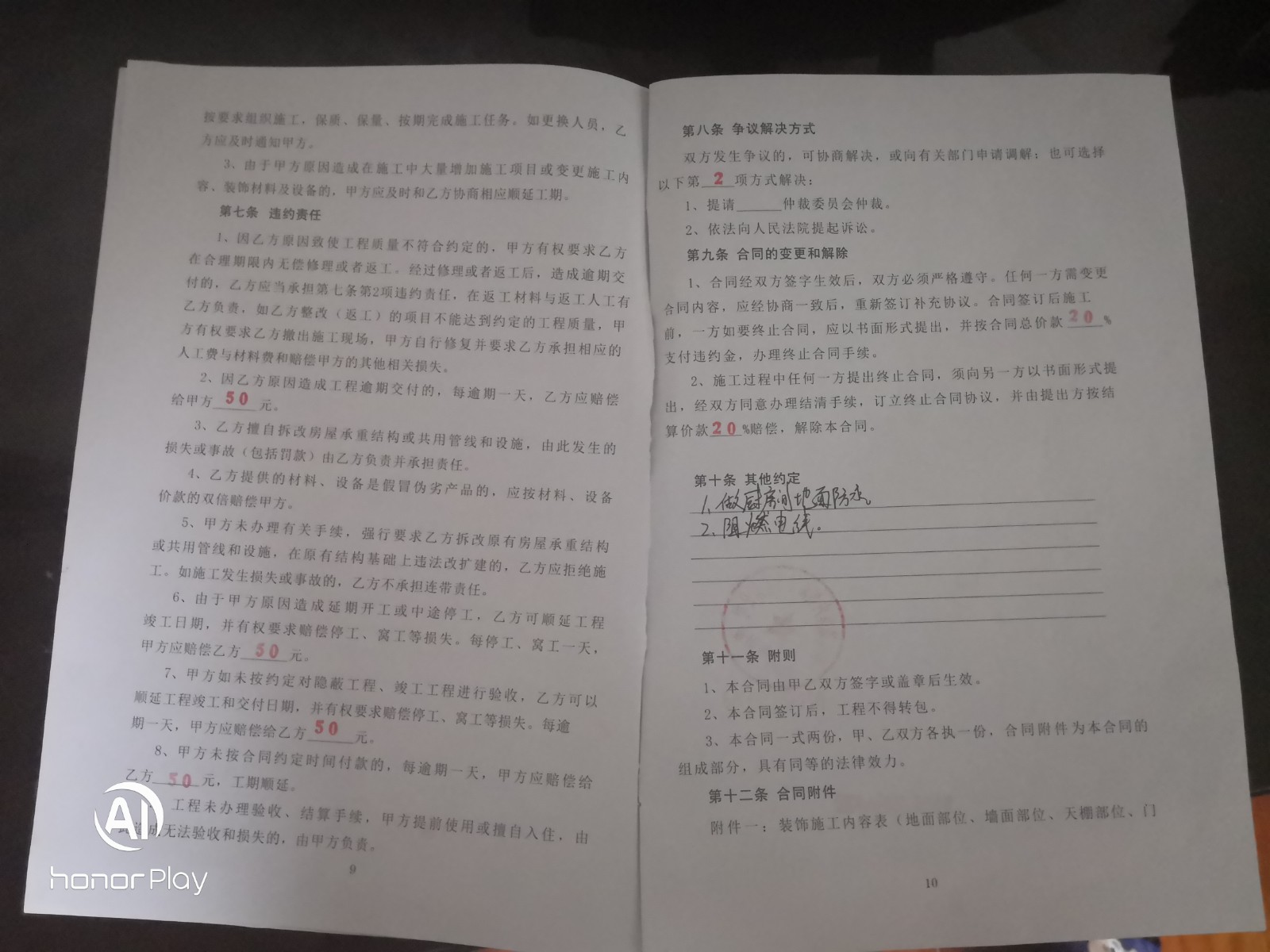 前面的項(xiàng)目在做的中要增加錢(qián)款,我們也付清了,但應(yīng)該要維修到現(xiàn)在都拖著不維修,1:廳內(nèi)PVC空調(diào)下水管道沒(méi)有粘膠水,2:墻磚水龍頭洞開(kāi)大,開(kāi)偏了,沒(méi)有說(shuō)法。3:水槽不按裝,拖延時(shí)間,我們找人按裝了,按裝費(fèi)用80元,4:要我代購(gòu)水泥粘合劑,滾筒費(fèi)用75元沒(méi)有付款。合同期內(nèi)聯(lián)系對(duì)方要求完成項(xiàng)目,對(duì)方不予理睬,多次催促后不接電話(huà)以及將我方踢出微信群。后我方通過(guò)市民熱線(xiàn)投訴,經(jīng)過(guò)住宅裝飾一網(wǎng)通的約見(jiàn)下,協(xié)商是對(duì)方于2020年8月31日前完成剩余工程,截至目前沒(méi)有前來(lái)施工。