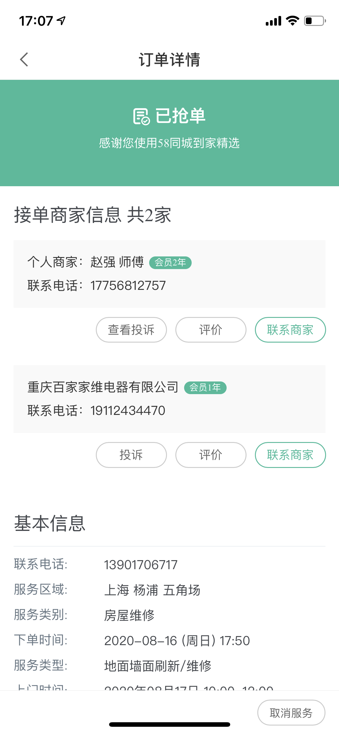 | 裝修面積 | 17m2 | 投訴人手機(jī) | 1390170**** | 被投訴人手機(jī) | 1775681**** |