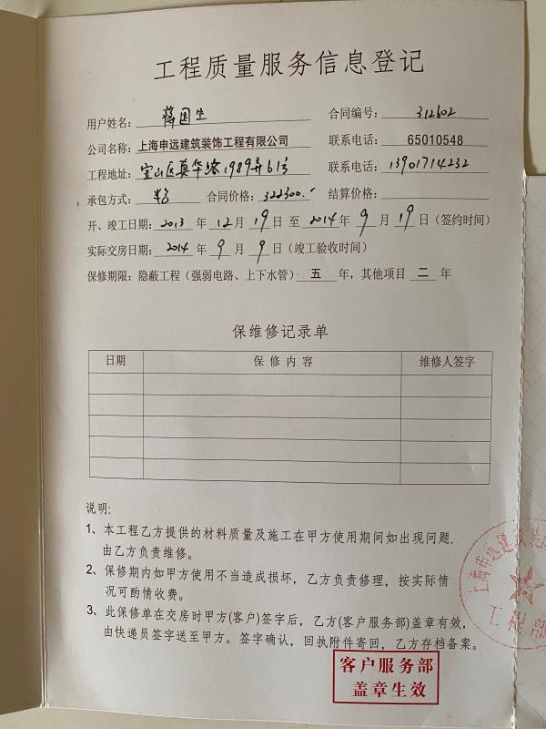 | 投訴類型 | 施工質(zhì)量 | 投訴人 | 顧** | 被投訴單位 | 上海申遠(yuǎn)建筑裝飾工程有限公司 |