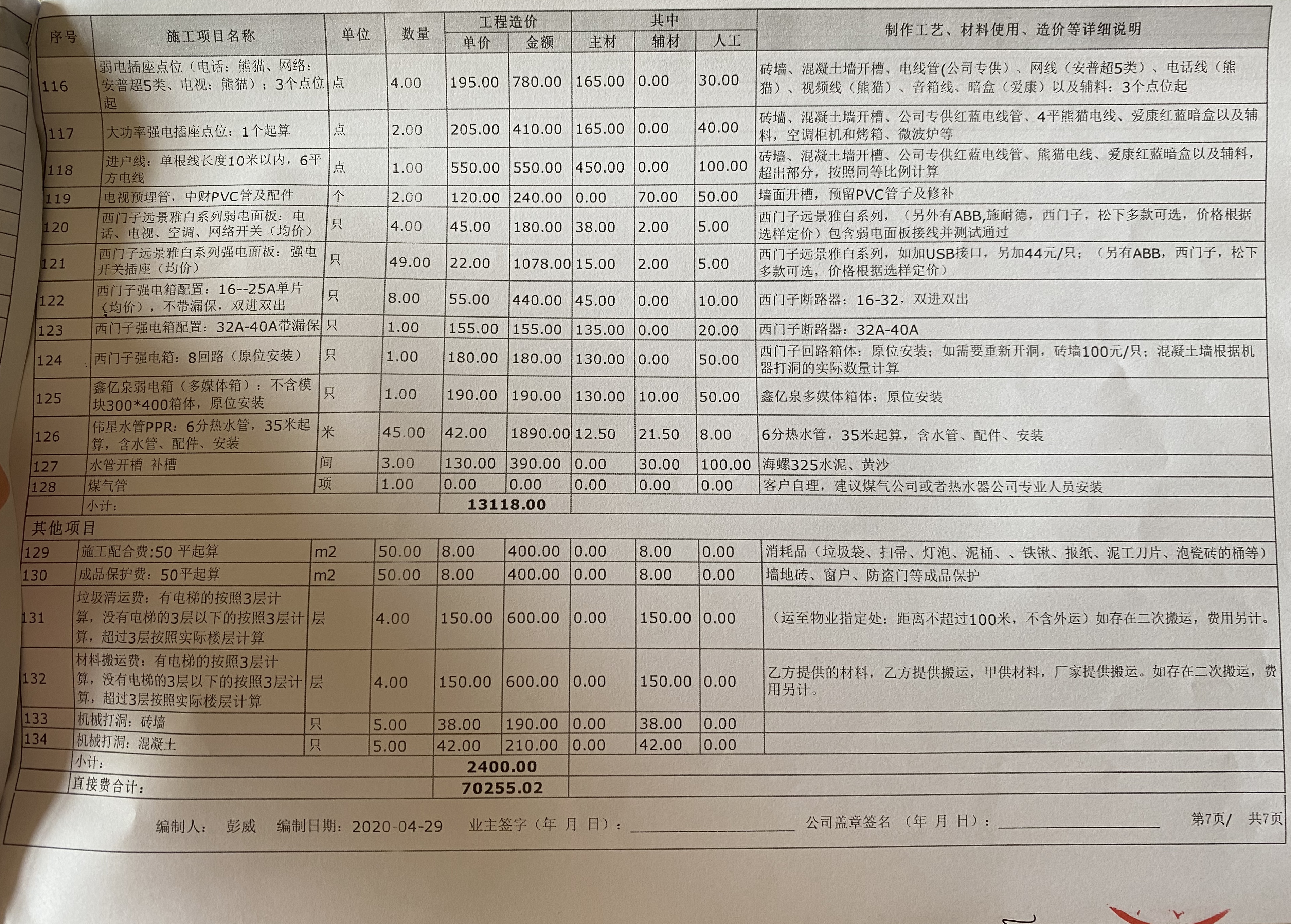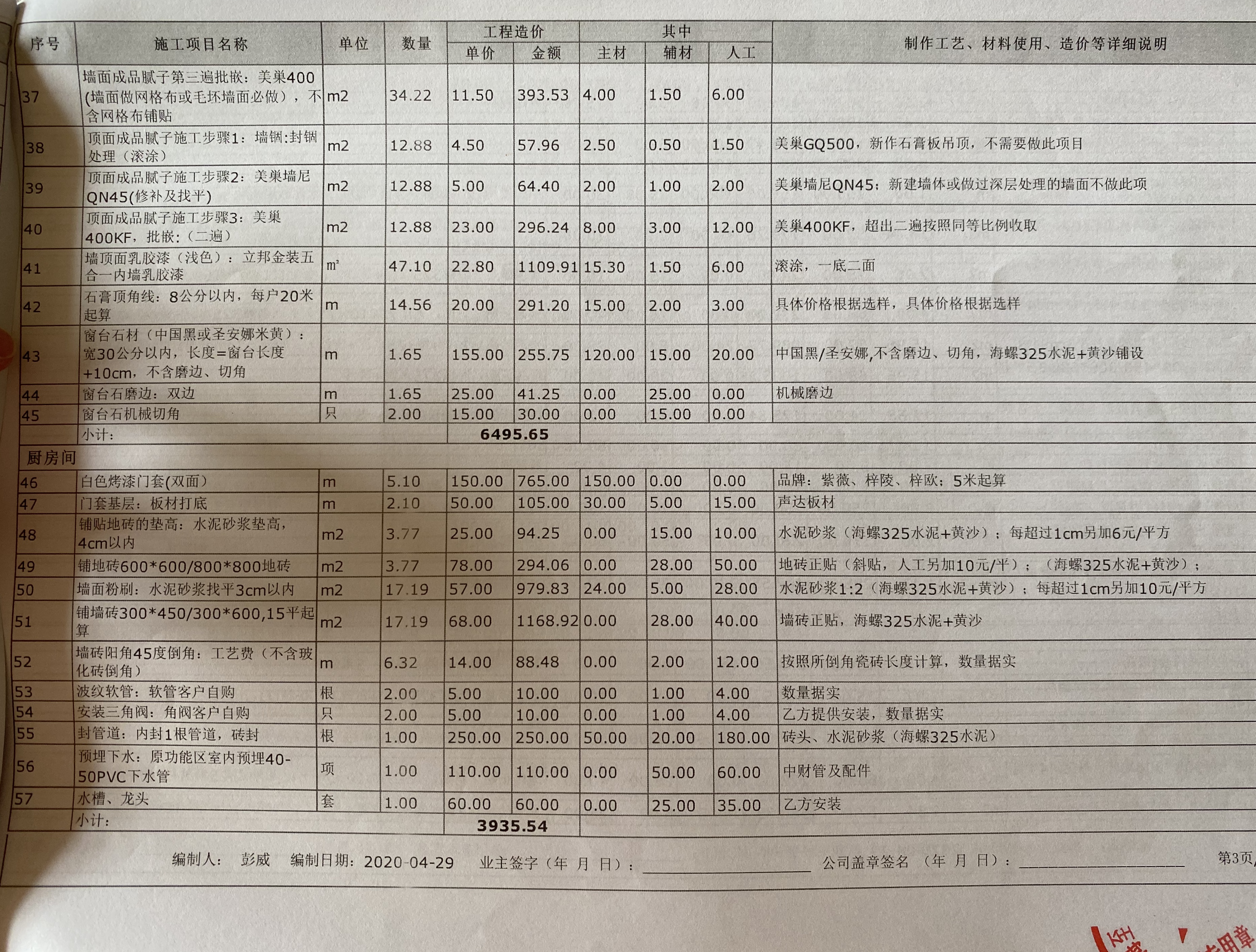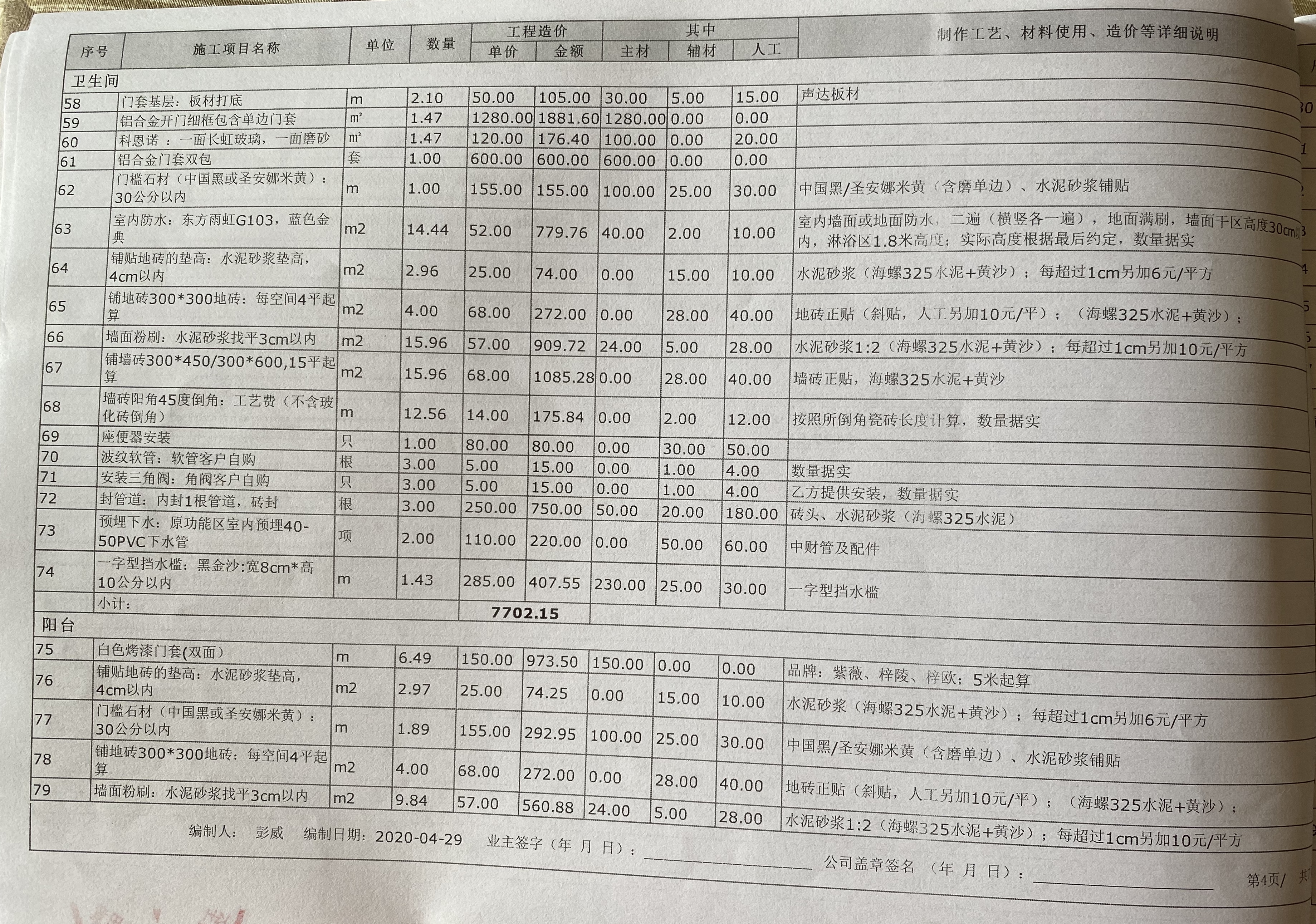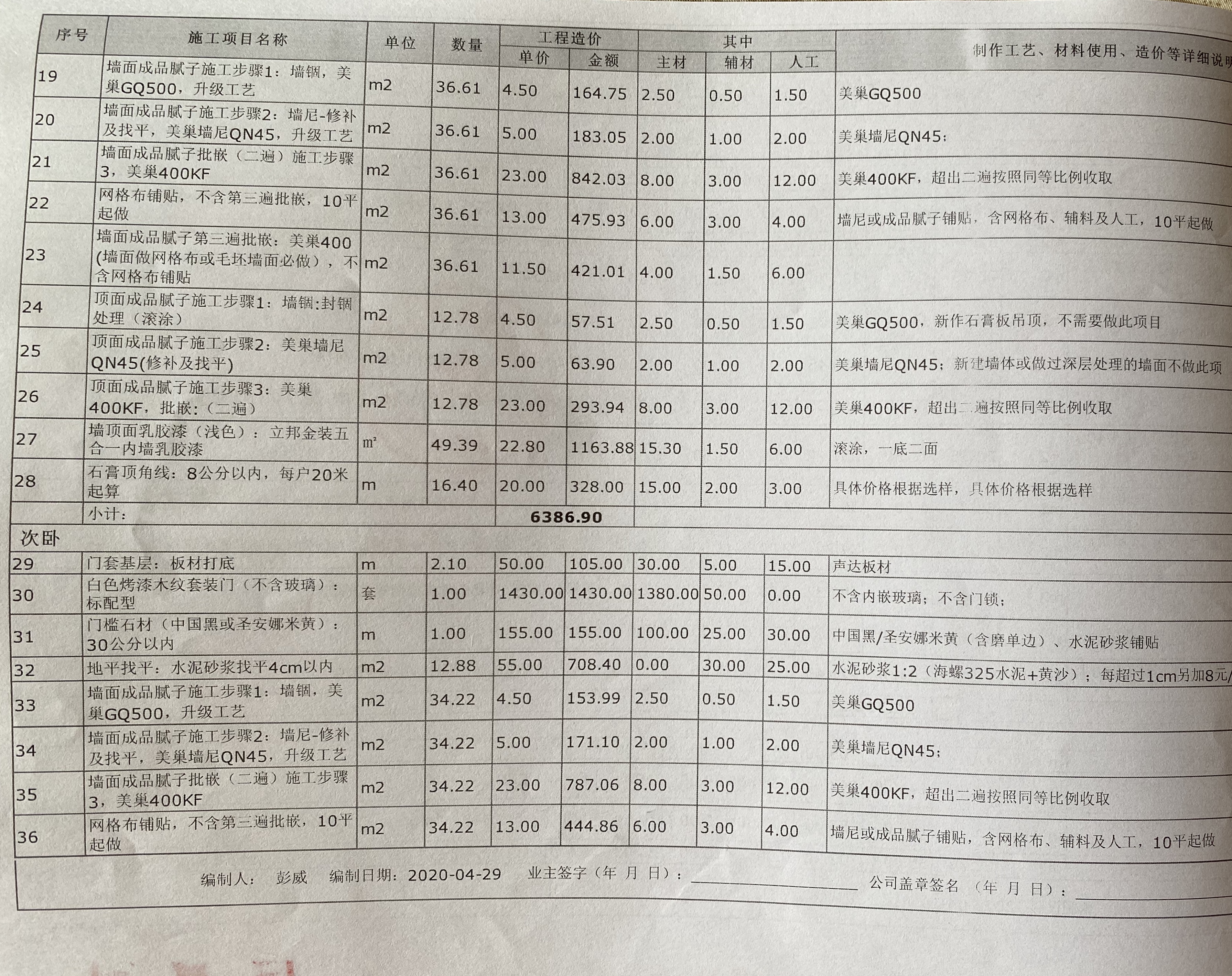 2020年5月初-8月初,由該司委派的設(shè)計師彭威和包工頭徐長明對我家進(jìn)行半包裝修。