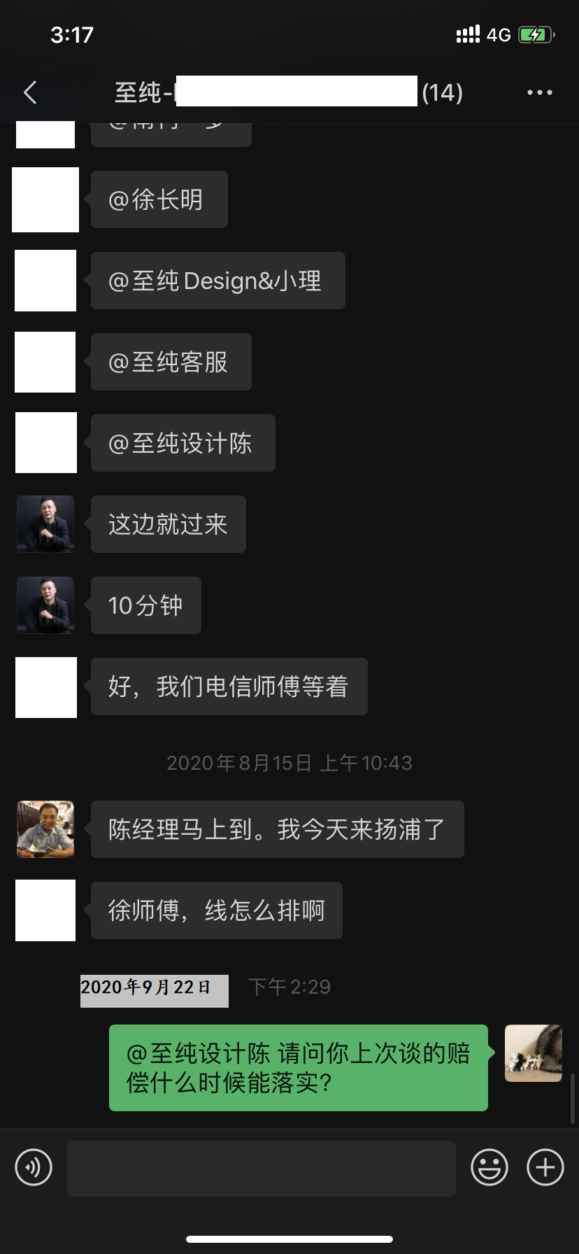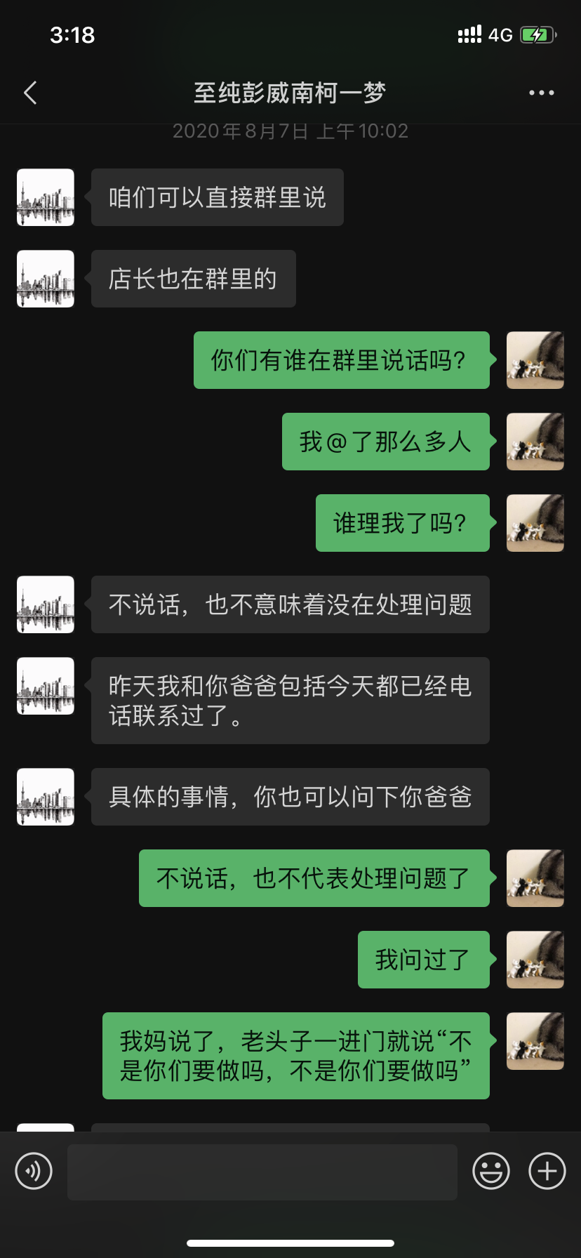 因不滿意以上種種,和寶山店的店長提出過賠償,對方一開始是答應(yīng)的,但是過去一個多月了,杳無音信,微信上聯(lián)系他們也不回復(fù)。