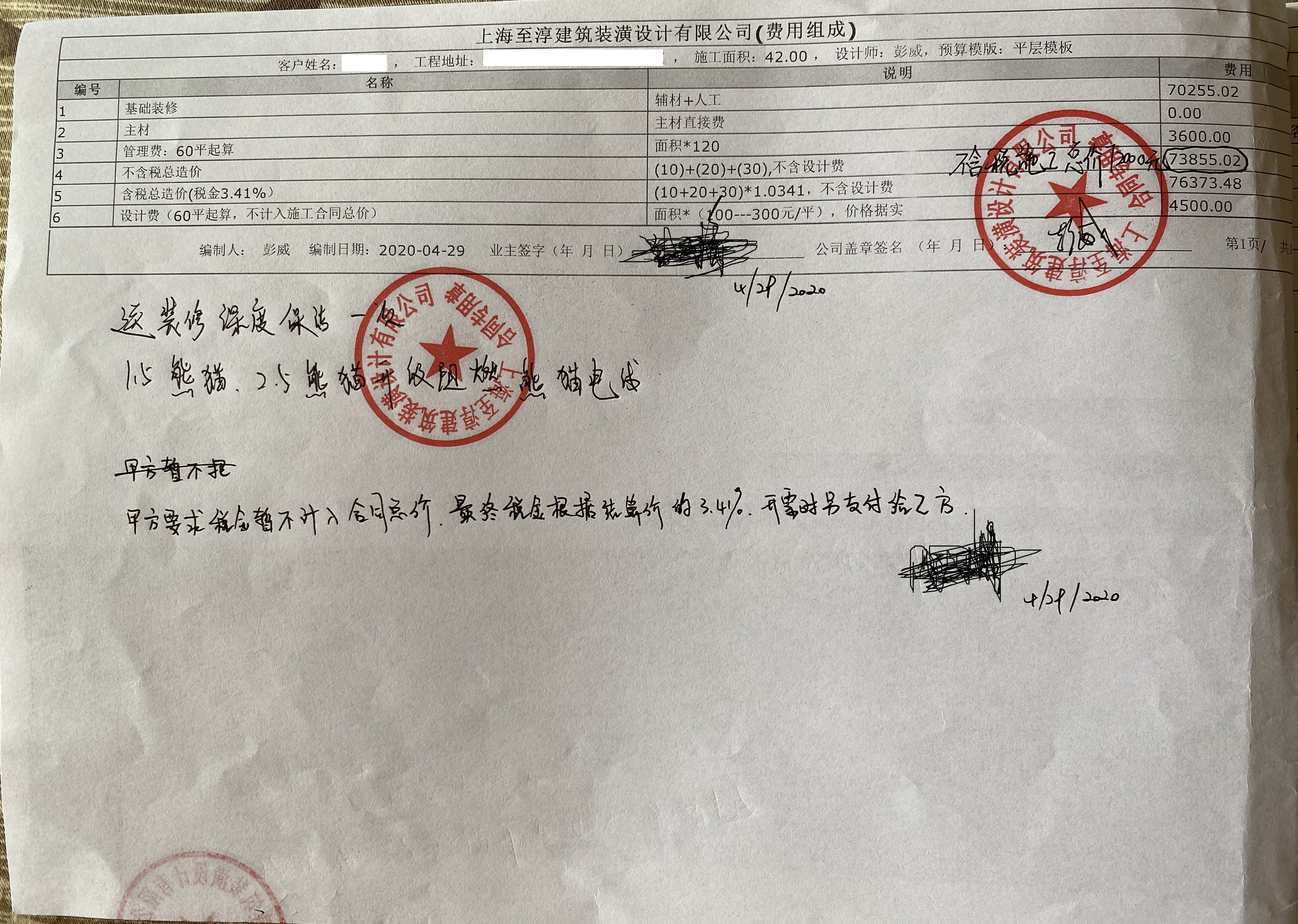 簽訂的半包合同7.2萬,另支付設(shè)計費(fèi)4500元。