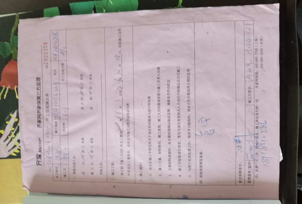 | 裝修面積 | 91m2 | 投訴人手機(jī) | 1381654**** | 被投訴人手機(jī) | 1332181**** |