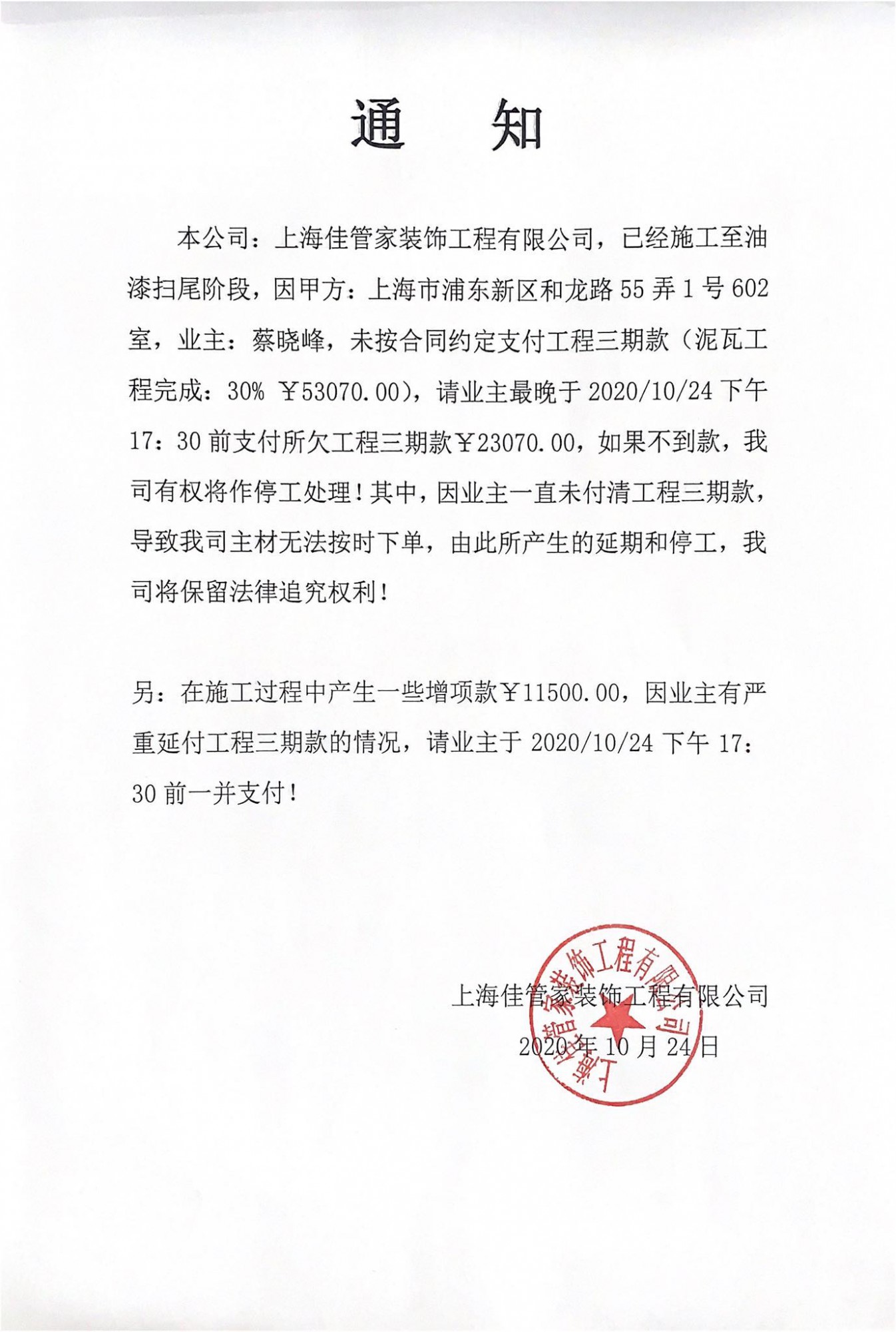3.該裝修公司在工程期內(nèi)出現(xiàn)嚴(yán)重違約行為,并通過(guò)停工等不正當(dāng)方式,單方面要寫(xiě)業(yè)主付清項(xiàng)目費(fèi)用;