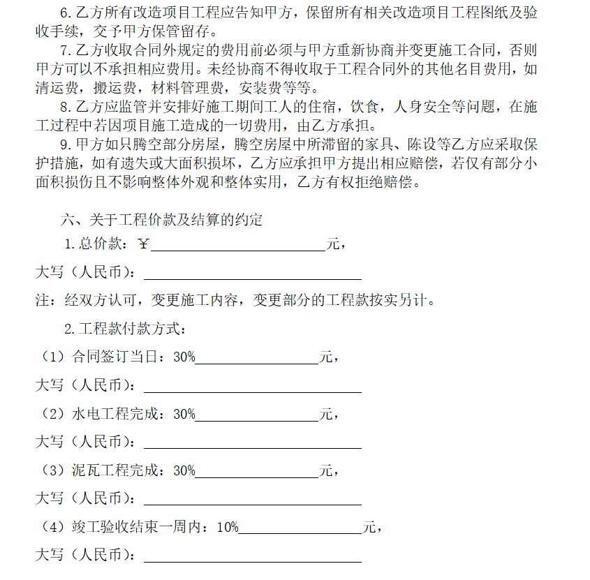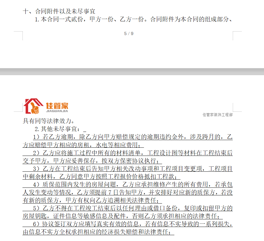 3.完成好合同內(nèi)遺漏的,正常裝修應(yīng)交付的所有項(xiàng)目;