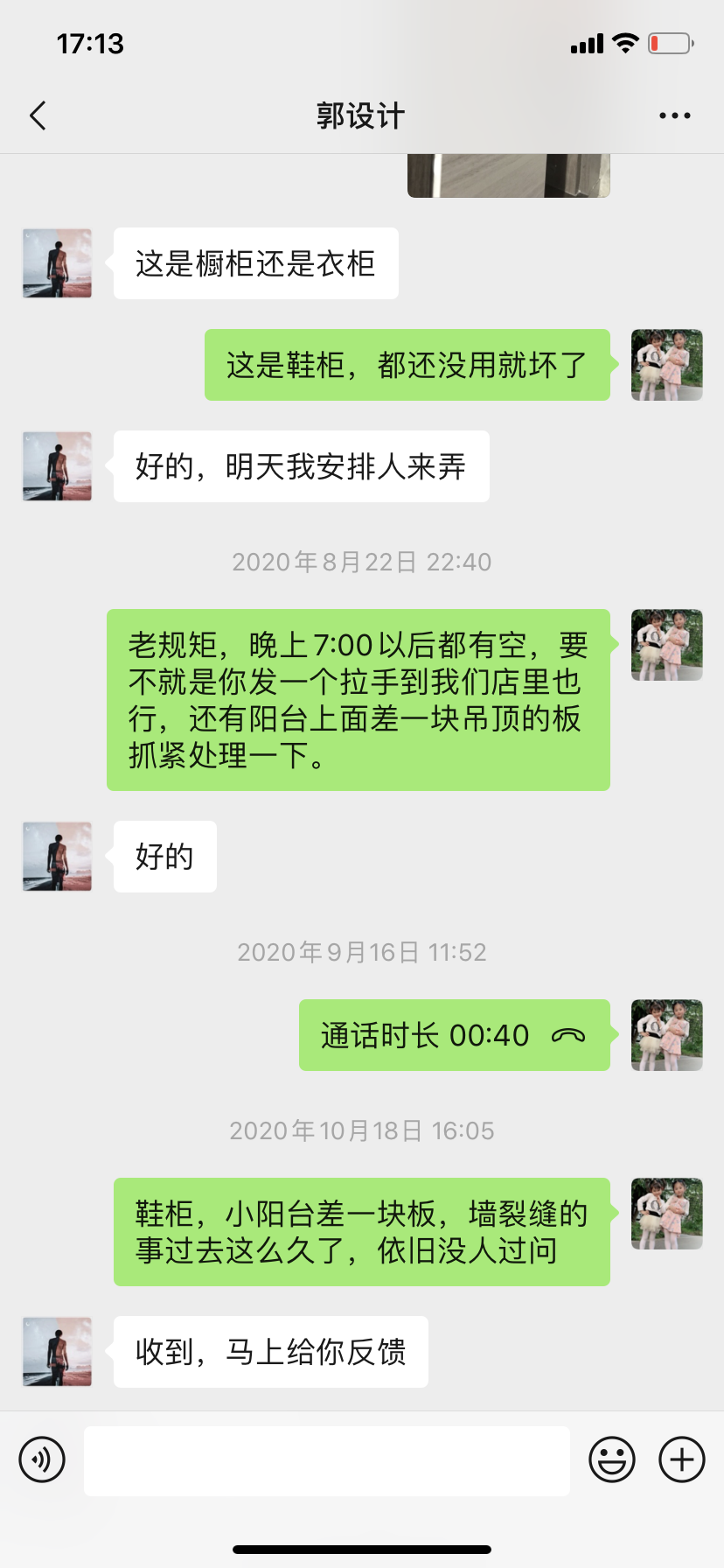 | 投訴類型 | 施工質量 | 投訴人 | 謝** | 被投訴單位 | 貴州快樂佳園裝飾工程有限公司遵義分公司 |