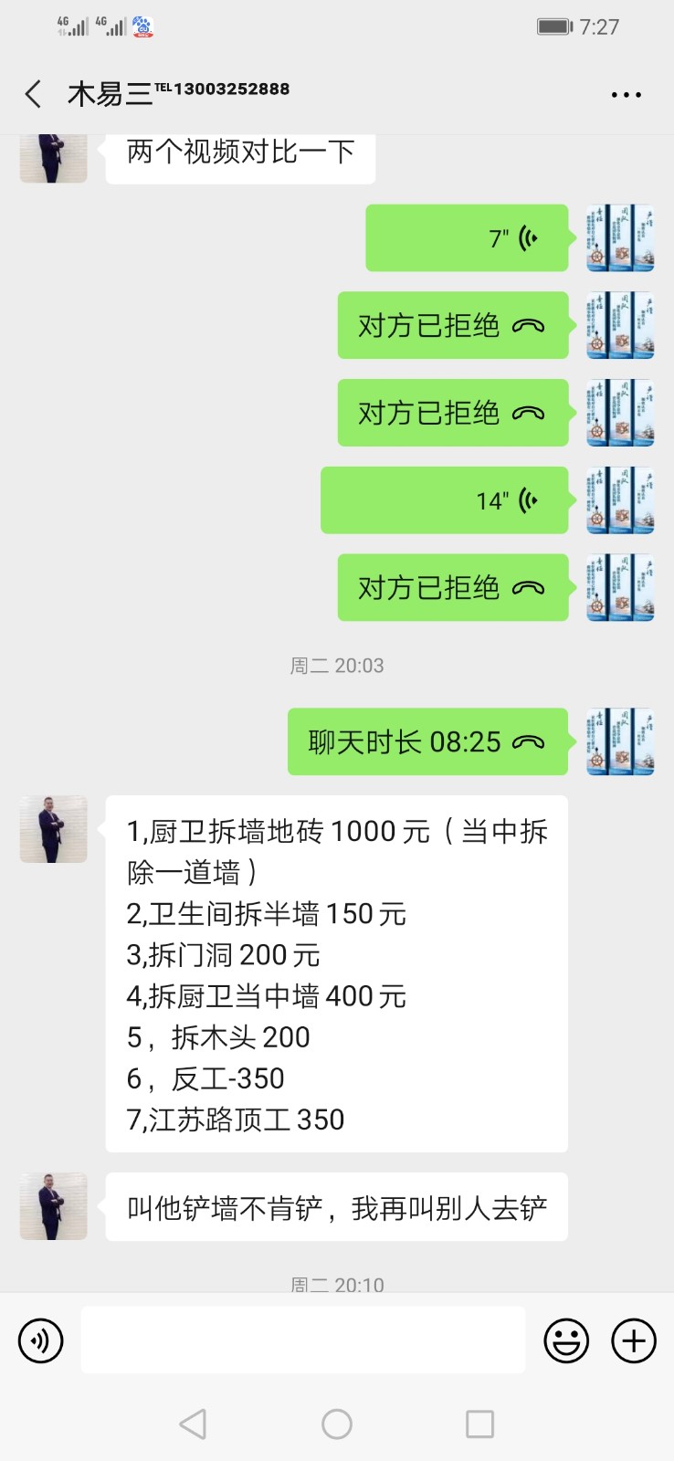 | 裝修面積 | 50m2 | 投訴人手機 | 1780750**** | 被投訴人手機 | 1300325**** |