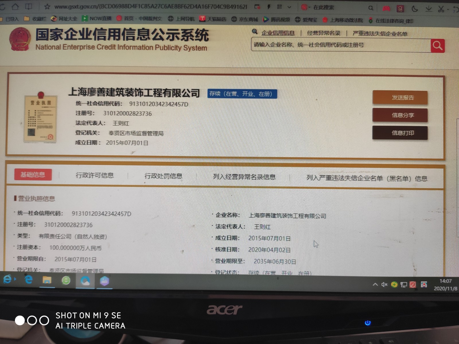 | 投訴類型 | 施工拖延 | 投訴人 | 陳** | 被投訴單位 | 上海廖善裝飾工程有限公司 |