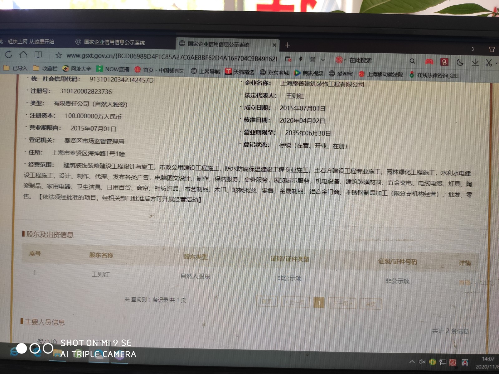 | 公司類型 | 有限責任公司(自然人獨資) | 行業(yè) | 土木工程建筑業(yè) |