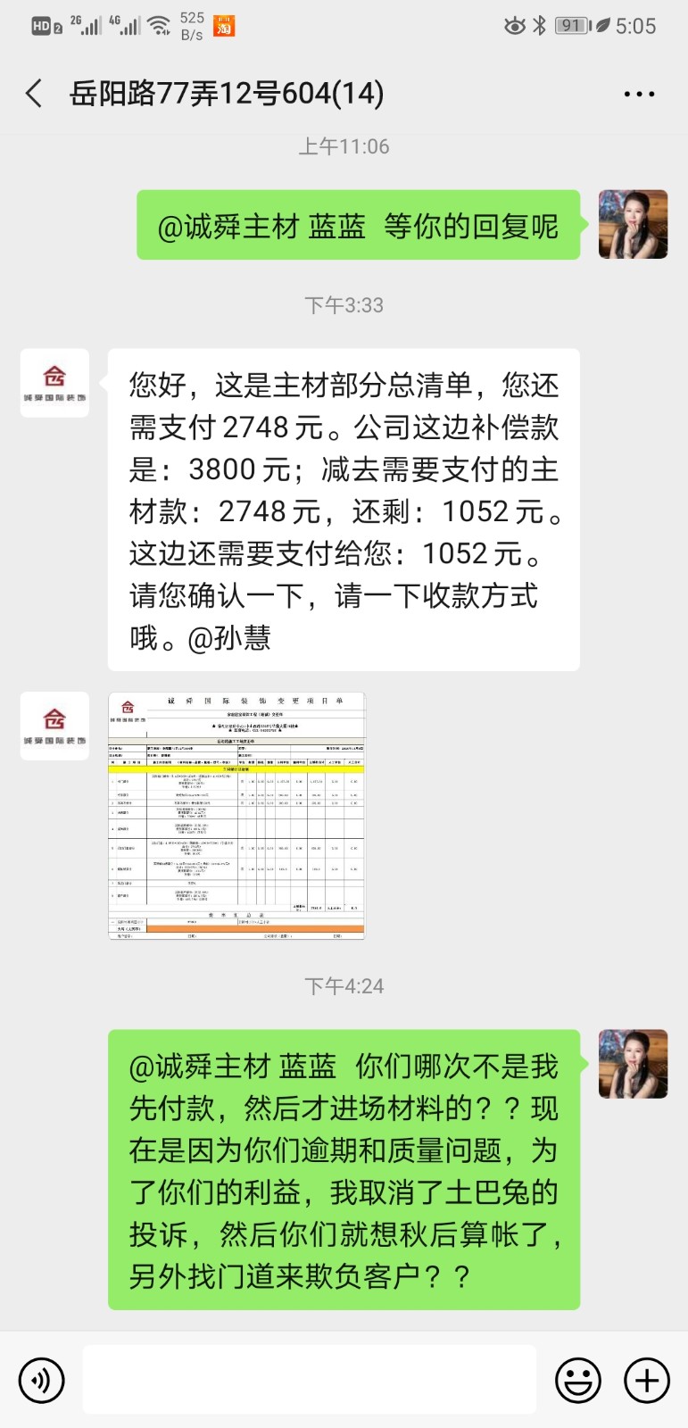 然而,當(dāng)我從土巴兔平臺撒訴以后,他們又變臉了,說我還有工程款需要給他們,到最后說只給我1052元??!