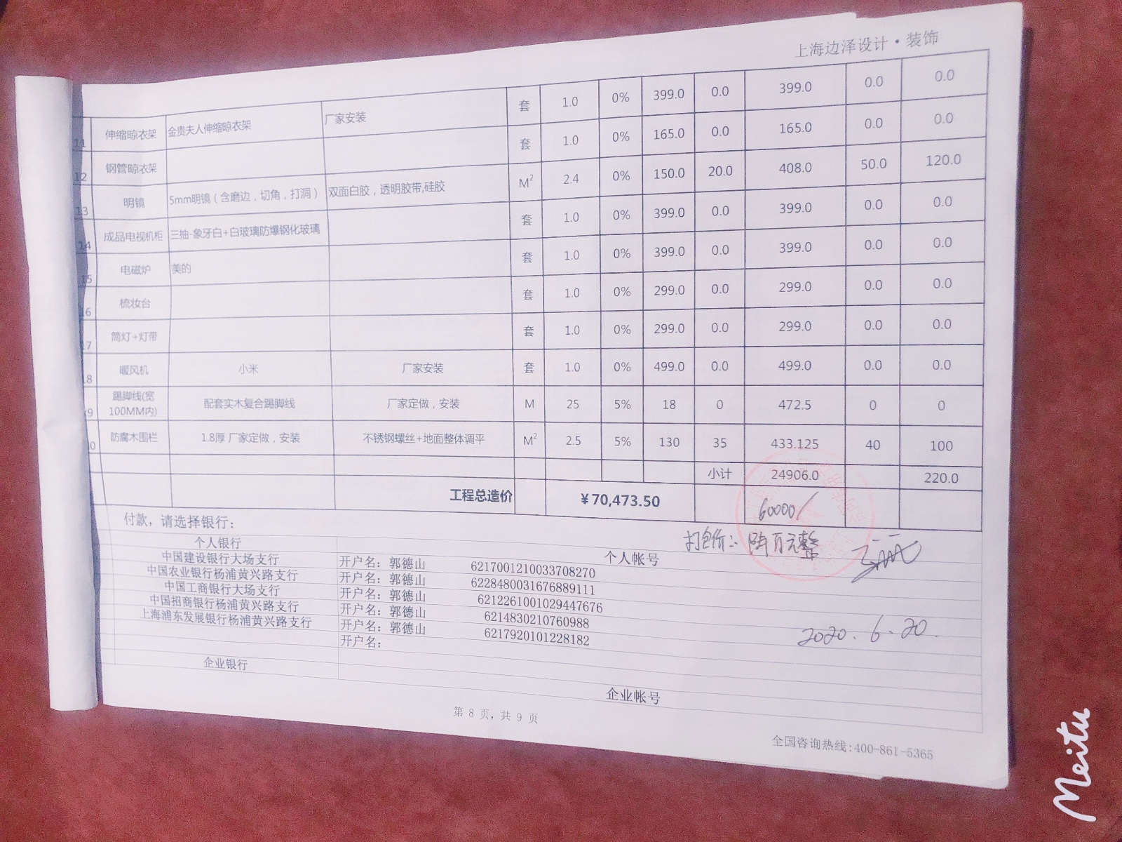 《海派優(yōu)裝裝修平臺》推薦派單給《邊澤裝修公司》套路坑子給我裝修,《海派優(yōu)裝平臺》靠譜嗎???邊澤設(shè)計師曹壯壯負(fù)責(zé)搗鬼預(yù)算漏項,負(fù)責(zé)把客戶騙進(jìn)來簽合同交錢,錢交了設(shè)計師曹壯壯就不管了,27平米的房子包工包料一次性打包價6萬,《邊澤裝修公司》以3萬的價格包給二包葉師傅施工,施工過程中以預(yù)算少了為由加錢,不加錢就停工,一個星期只施工一天,停工6天,其中還包括電工在別處施工沒時間過來,停工等電工等了好幾天,27平米的房子6月20號裝修到現(xiàn)在11月19號半年時間沒有完工還在停工狀態(tài),偷工減料豆腐渣工程,有照片有視頻為證,合同上所有柜體是兔寶寶免漆板,實際給做衣柜后背板用的是一級的膠合板,合同上窗戶是鳳鋁鋁材789#1.4mm厚規(guī)格,實際安裝的是0.8mm厚,合同是12號槽鋼,偷工減料給安裝6號槽鋼。合同電線熊貓的,給用起凡電線。更過份的是拿用過氧化變黑的舊電線安裝上了,合同上是聲達(dá)木工板,竟然給用棵美木工板。偷工減料竟還用停工威脅,不加錢就停工,門兩側(cè)的瓷磚線不一樣高,1側(cè)1米6,1側(cè)1米7,有圖有真相,衛(wèi)生間柜子沒有腿,而且錯量尺寸大了三公分導(dǎo)致衛(wèi)生間移門無法安裝,我三番五次到公司去找郭德山老板解決,找平臺出面協(xié)調(diào)解決,有的完成返工,有的至今未處理,合同#沖淋房透明鋼化玻璃8mm,實際安裝用是5mm,合同是圣象地板淺灰色實木復(fù)合1.5厚,型號待定,型號待定是客戶選,可現(xiàn)在郭德山老板要給我用1.2厚的深灰色,告訴我要用1.5厚淺灰色我選的型號就要讓我加錢,不同意加錢就停工不做,預(yù)算多賺錢的就做,預(yù)算少不賺錢的就不做要退給我自己做,我是包工包料一次性打包價,6月17號微信告知設(shè)計師地板要圣象實木復(fù)合1.5厚淺灰色,6月20號簽的合同,合同是圣象實木復(fù)合地板1.5厚的淺灰色,包工包料一次性打包價,竟然還要讓我加錢,哪有這樣的道理???