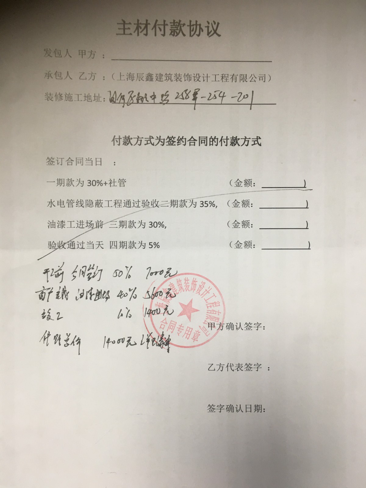 (上海尚辰建筑裝飾設(shè)計工程有限公司)公司藝名是(尚辰創(chuàng)意空間規(guī)劃)王瑤設(shè)計師17701614342何順設(shè)計師13636093625他們辦公地址是上海是徐匯區(qū)宜山路705號C座10樓科技大廈,后來幫我轉(zhuǎn)嫁給上海辰鑫建筑裝飾設(shè)計工程有限公司,合同價格23000元,項目名稱如下:大門換防盜門,陽臺封掉敲隔離墻客廳三個房間窗子全部換掉,廁所不動,粉刷內(nèi)墻,10月17號簽合同當(dāng)時簽字共六份相關(guān)資料,但主合同至今未給我,我已經(jīng)催了5次,至今未給,現(xiàn)我向他們繳費23500元,工程主項目基本完成,現(xiàn)證在粉刷墻面,據(jù)說到11月20日完成,但工程中約定一些小項目現(xiàn)在還沒有做,我的訴求,本人目前在租房中,我希望尚辰創(chuàng)意空間規(guī)劃及上海辰鑫建筑裝飾設(shè)計工程有限公司盡快完工,給我一個干凈的家,本人實在無奈走到了上海裝飾行業(yè)協(xié)會,該裝飾公司以后不能如此坑人,本人的經(jīng)過向社會其他業(yè)主只是一個警示。