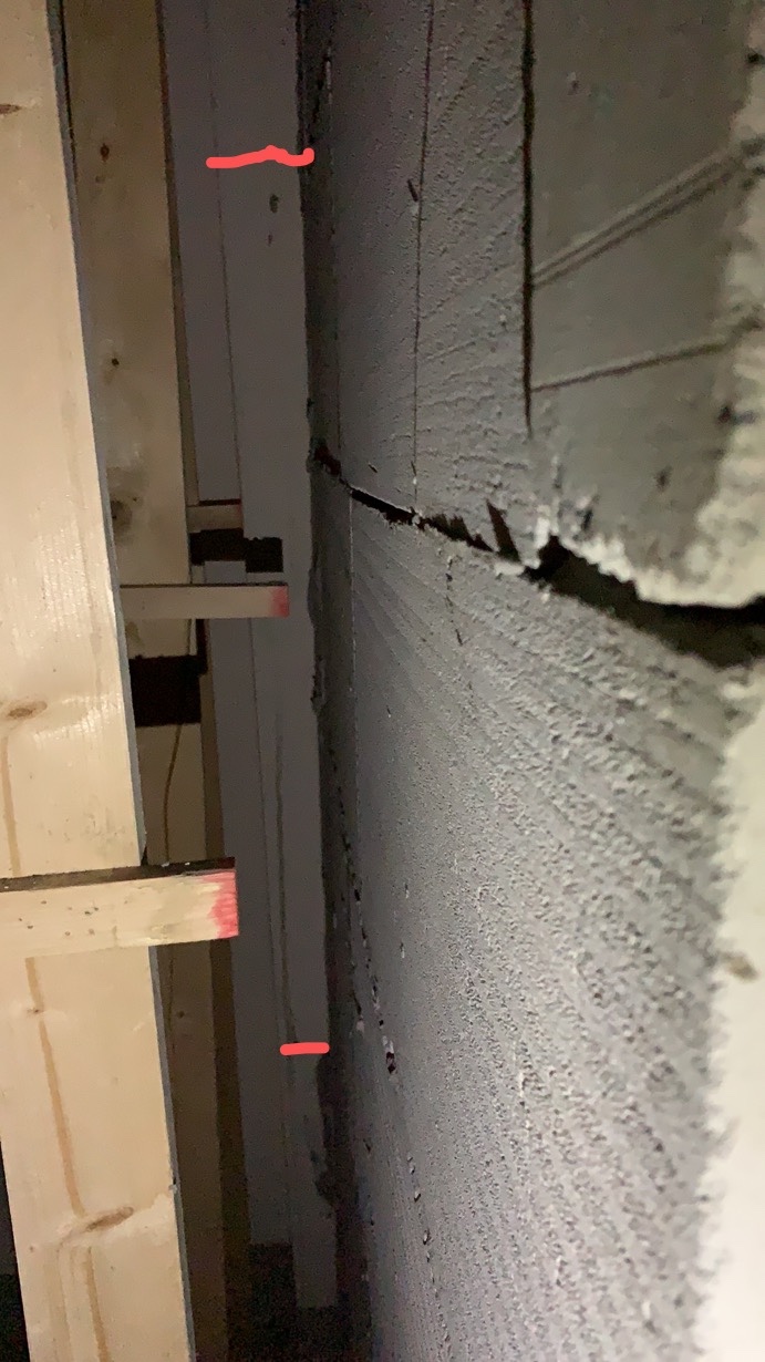 3,新砌墻體嚴重歪斜,一面2.3米墻上下差距3公分。見圖2。