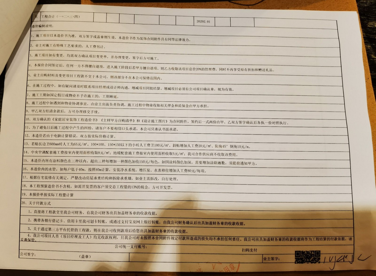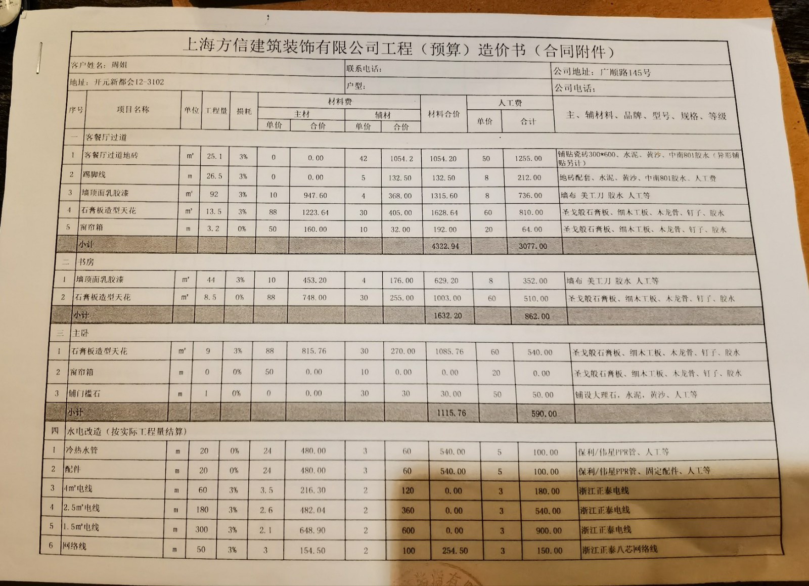 糾紛二:即使有加單,也該提前溝通,提前報(bào)價(jià),但是上海方信裝飾有限公司海寧分公司在未對我提起,也未經(jīng)過我同意的情況下,突然提出附加了多少東西,我無法認(rèn)可。