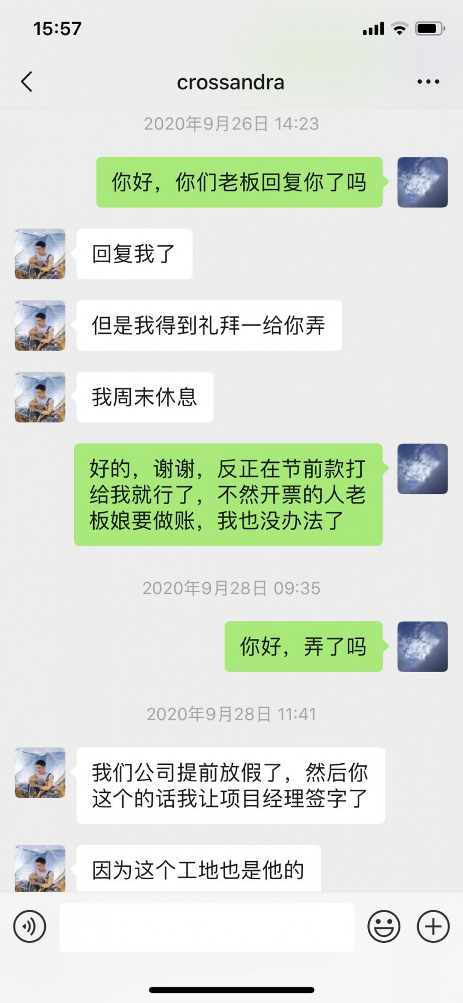 上海木鑫建筑工程有限公司底下項目經(jīng)理拖欠我家木門和吊頂貨款,然后公司老板楊勇臺答應(yīng)付款貨,告知先開票后付款,加了財務(wù)微信一切都按照他們公司流程走,最后以他們客戶沒付款為理由,要么找他們客戶結(jié)款要么找項目經(jīng)理。兩人推來推去。現(xiàn)在老板和項目經(jīng)理微信不回,電話不接。