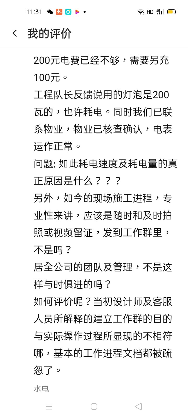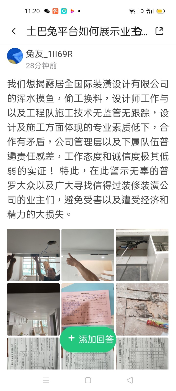 | 投訴類型 | 施工質(zhì)量 | 投訴人 | 沈** | 被投訴單位 | 上海居全裝潢設(shè)計(jì)有限公司 |