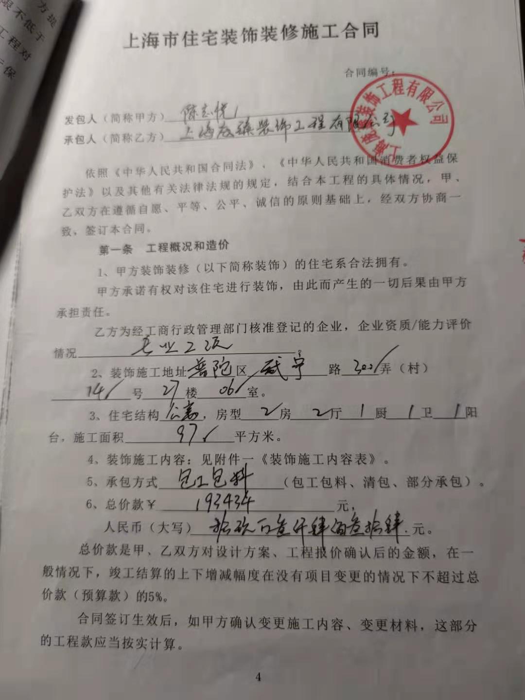| 裝修面積 | 97m2 | 投訴人手機 | 1882120**** | 被投訴人手機 | 1580180**** |