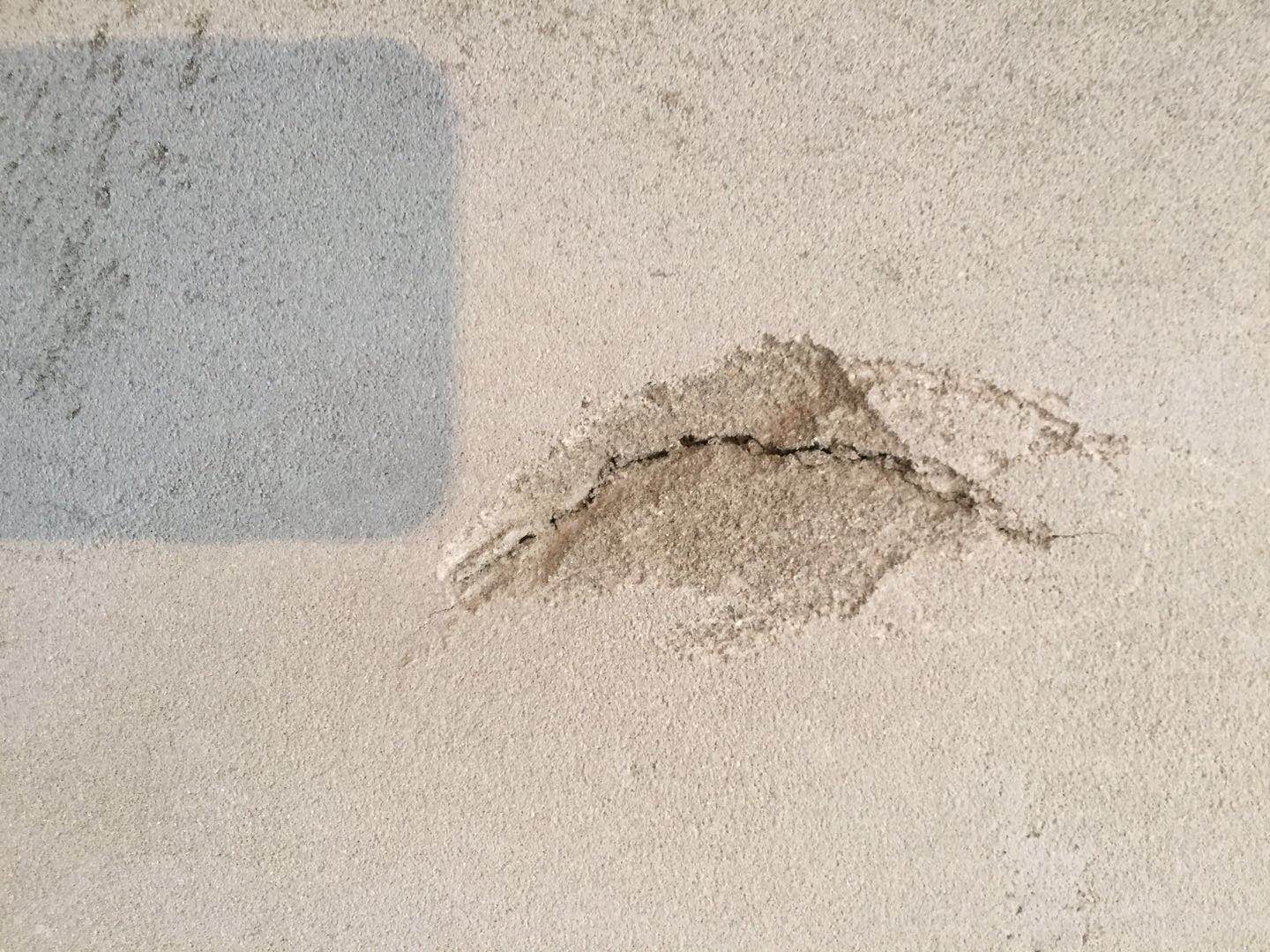 剛粉半面的墻未干已經(jīng)開裂了,墻橫截面沙子一層一層的,根本就沒有和水泥混合均勻,施工質(zhì)量讓人非常擔(dān)憂……