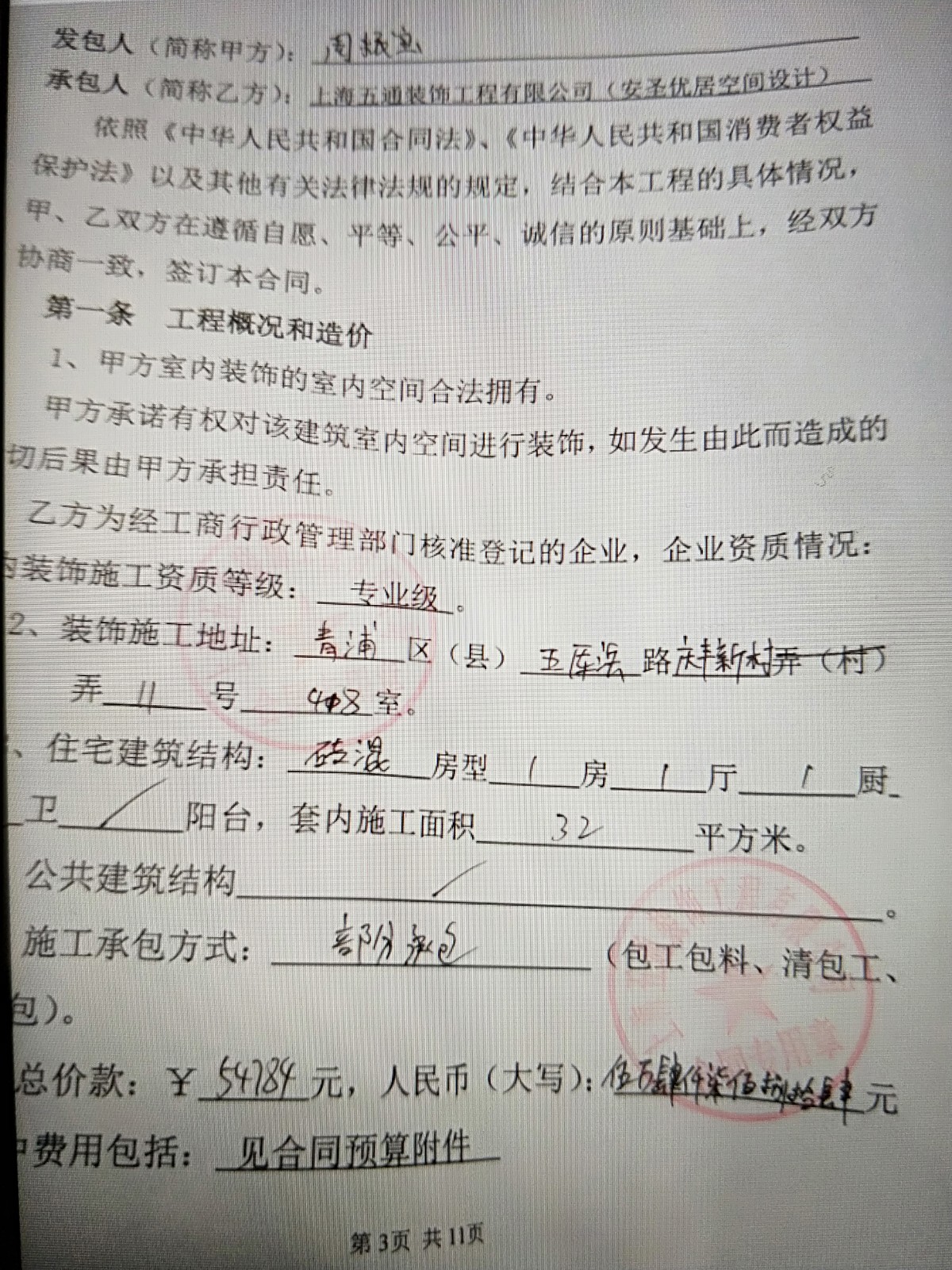 | 投訴類型 | 施工質(zhì)量 | 投訴人 | 周** | 被投訴單位 | 上海五通裝飾工程有限公司 |