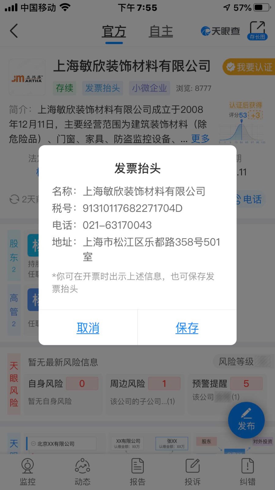 | 統(tǒng)一社會(huì)信用代碼 | 91310117682271704D | 投訴量 | 1次 查看 |