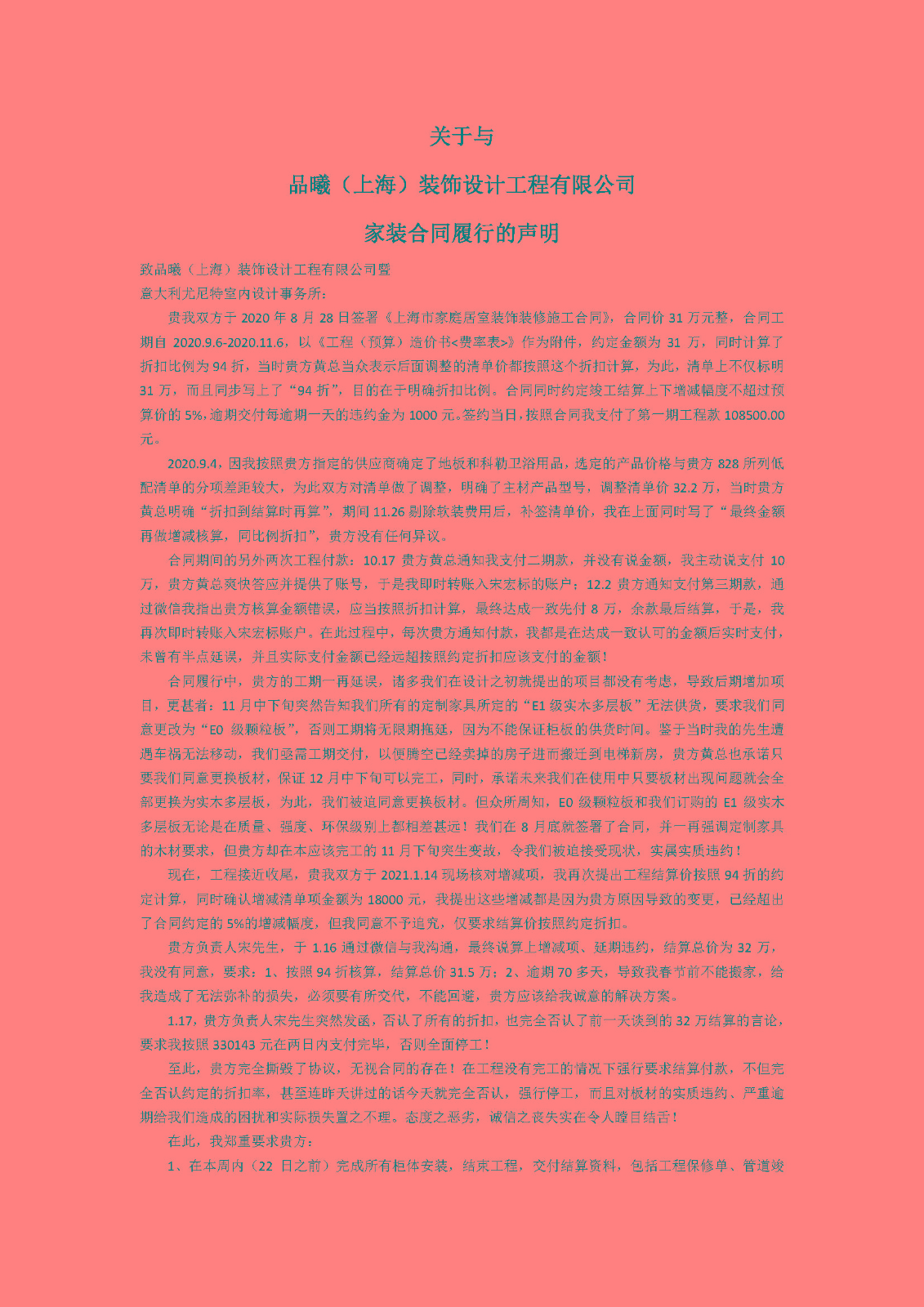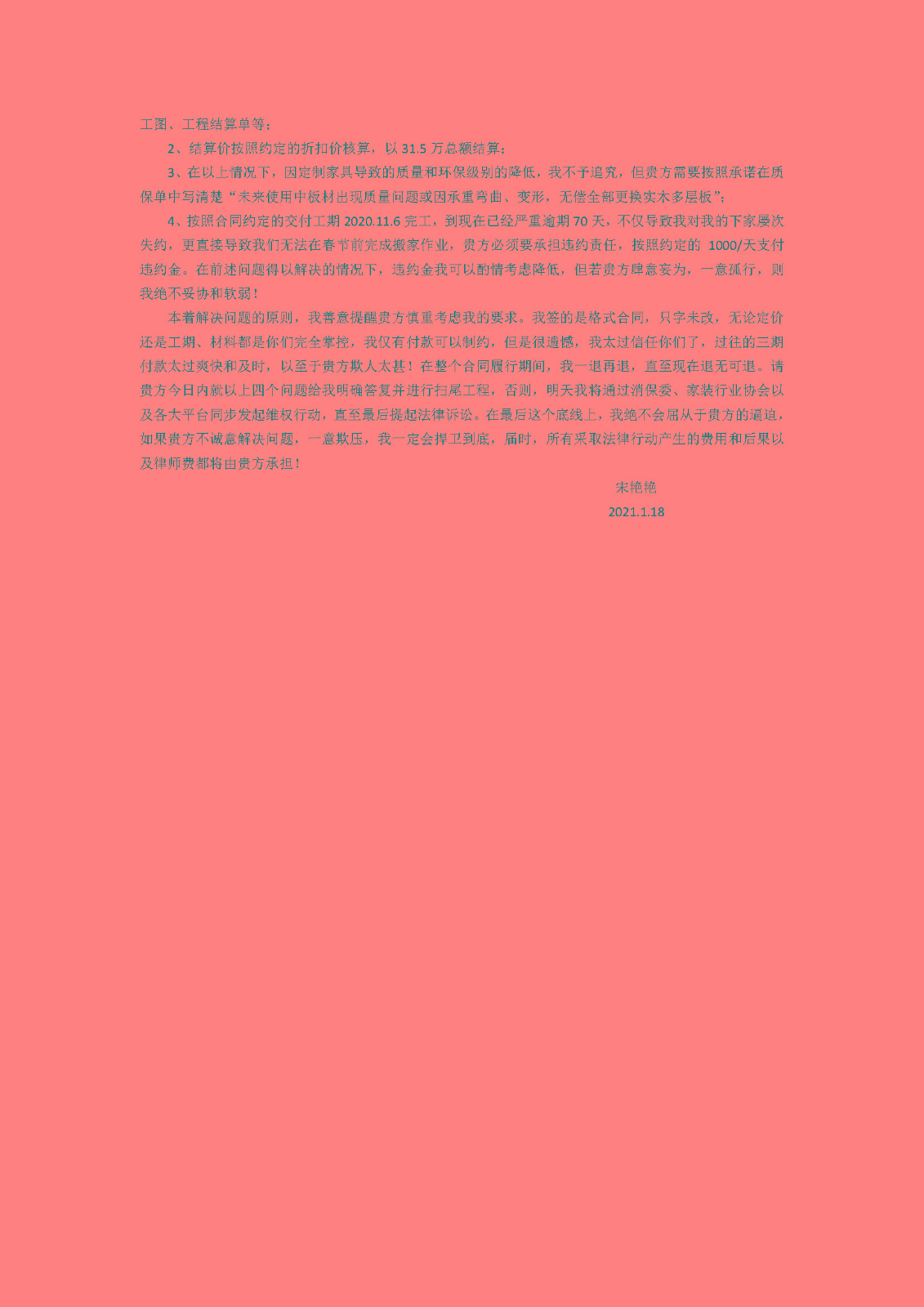 | 投訴類型 | 施工拖延 | 投訴人 | 宋** | 被投訴單位 | 品曦(上海)裝飾設(shè)計(jì)工程有限公司 |