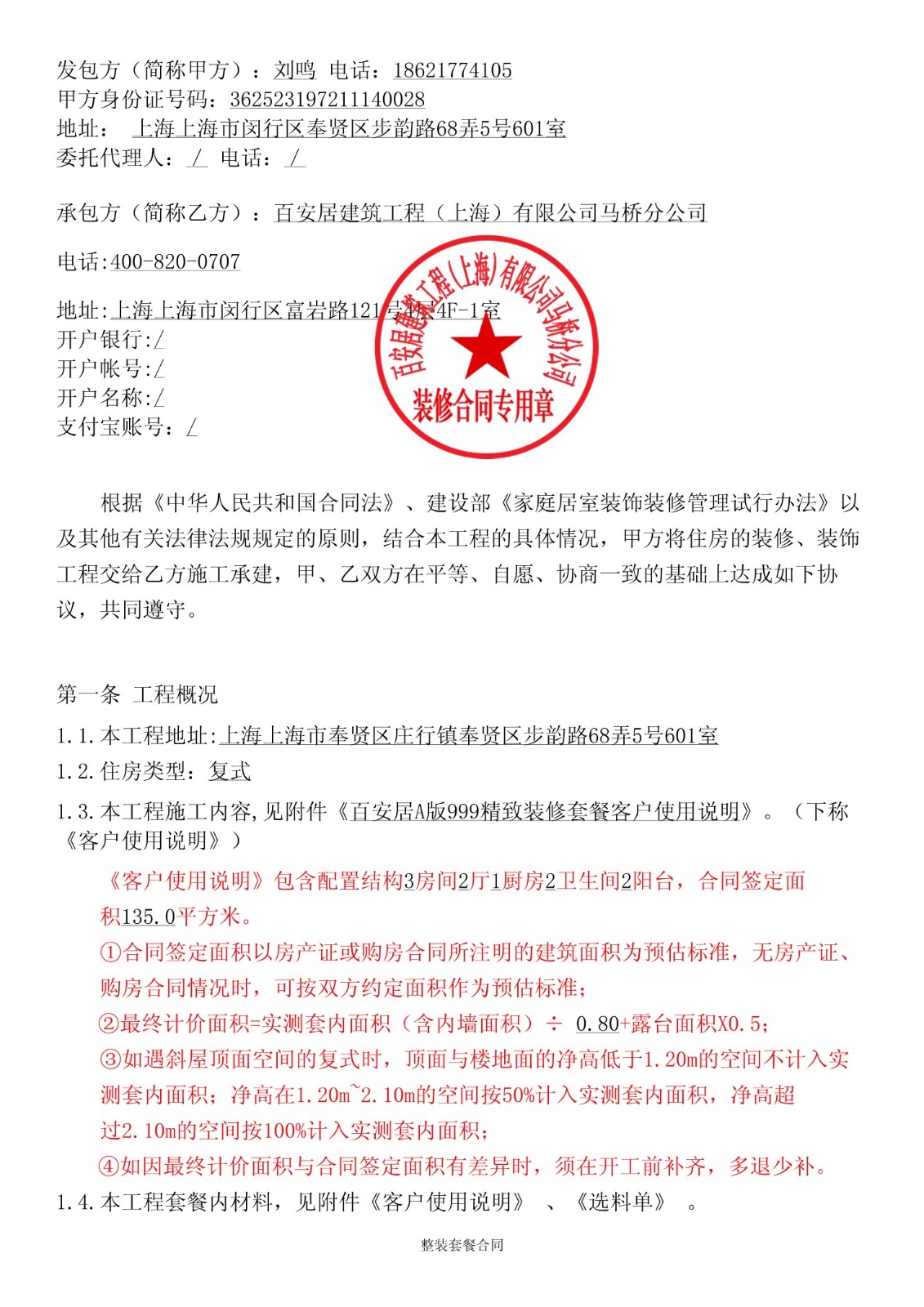 | 裝修面積 | 135m2 | 投訴人手機 | 1862177**** | 被投訴人手機 | 1777808**** |