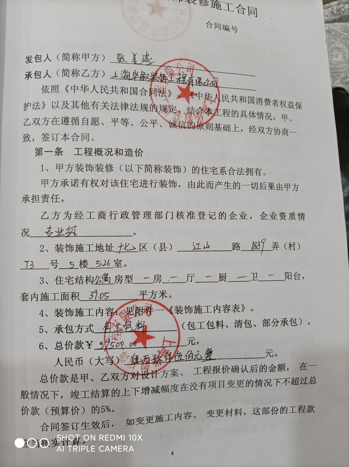 | 投訴類型 | 合同糾紛 | 投訴人 | 張** | 被投訴單位 | 上海華敘裝飾工程有限公司 |