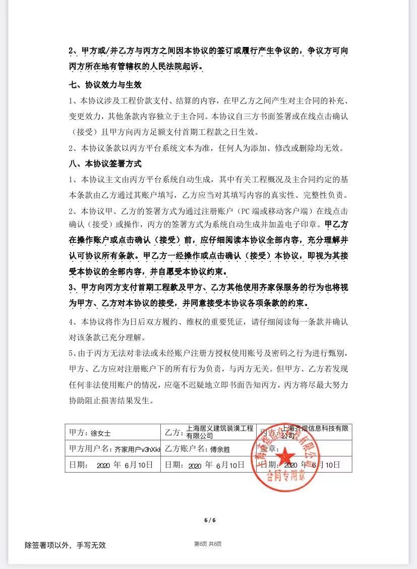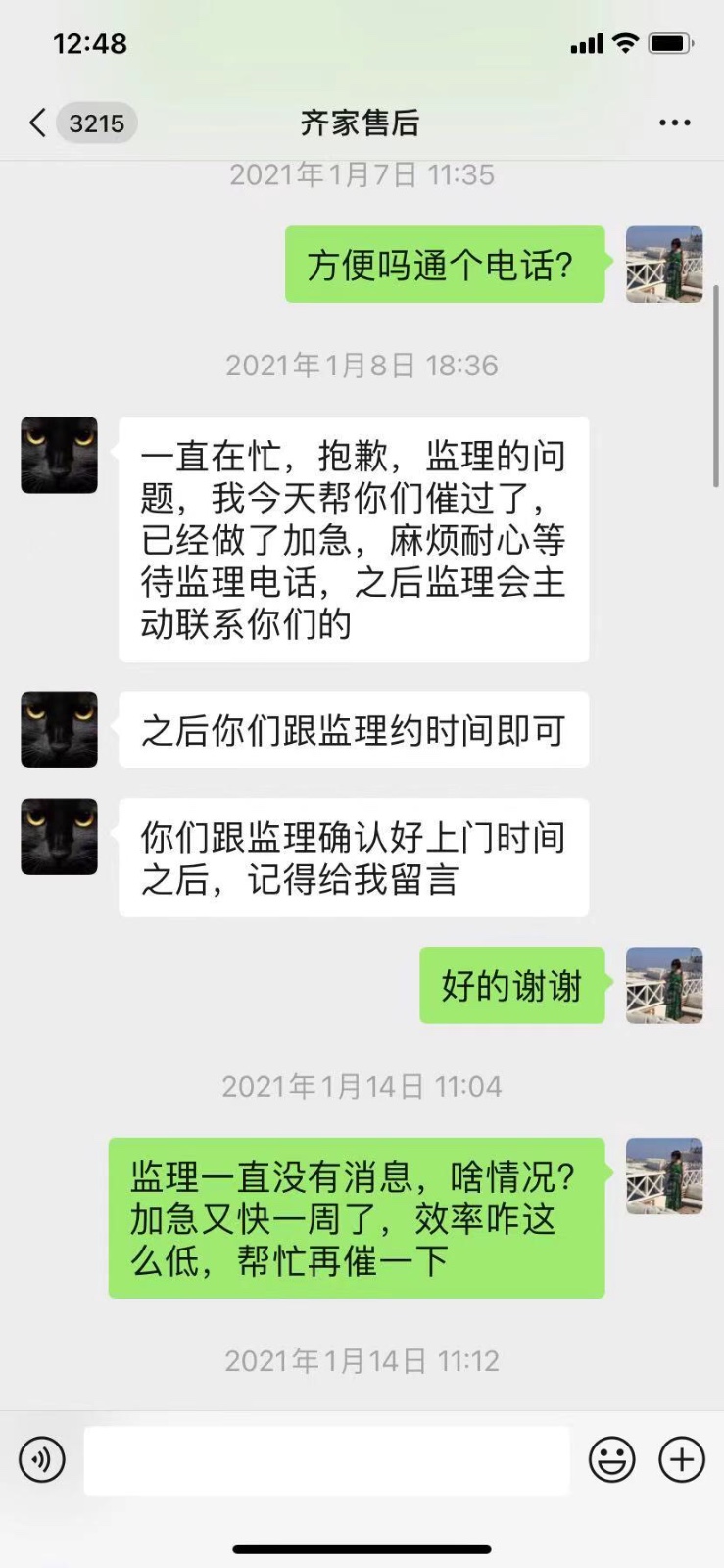 齊家網(wǎng)從開始審核合同就是混亂狀態(tài).齊家保的合同上沒有婁騰公司,而出現(xiàn)個(gè)居義公司,質(zhì)監(jiān)更是閉著眼睛無視消費(fèi)者的反饋還在事后寫客戶認(rèn)可質(zhì)量,對(duì)于用戶反映的問題最多的的反饋是已與商家溝通了,往往沒下文。