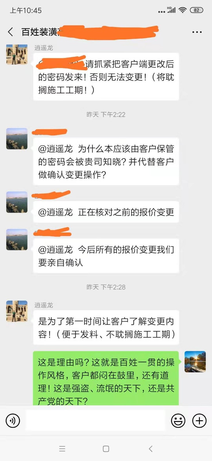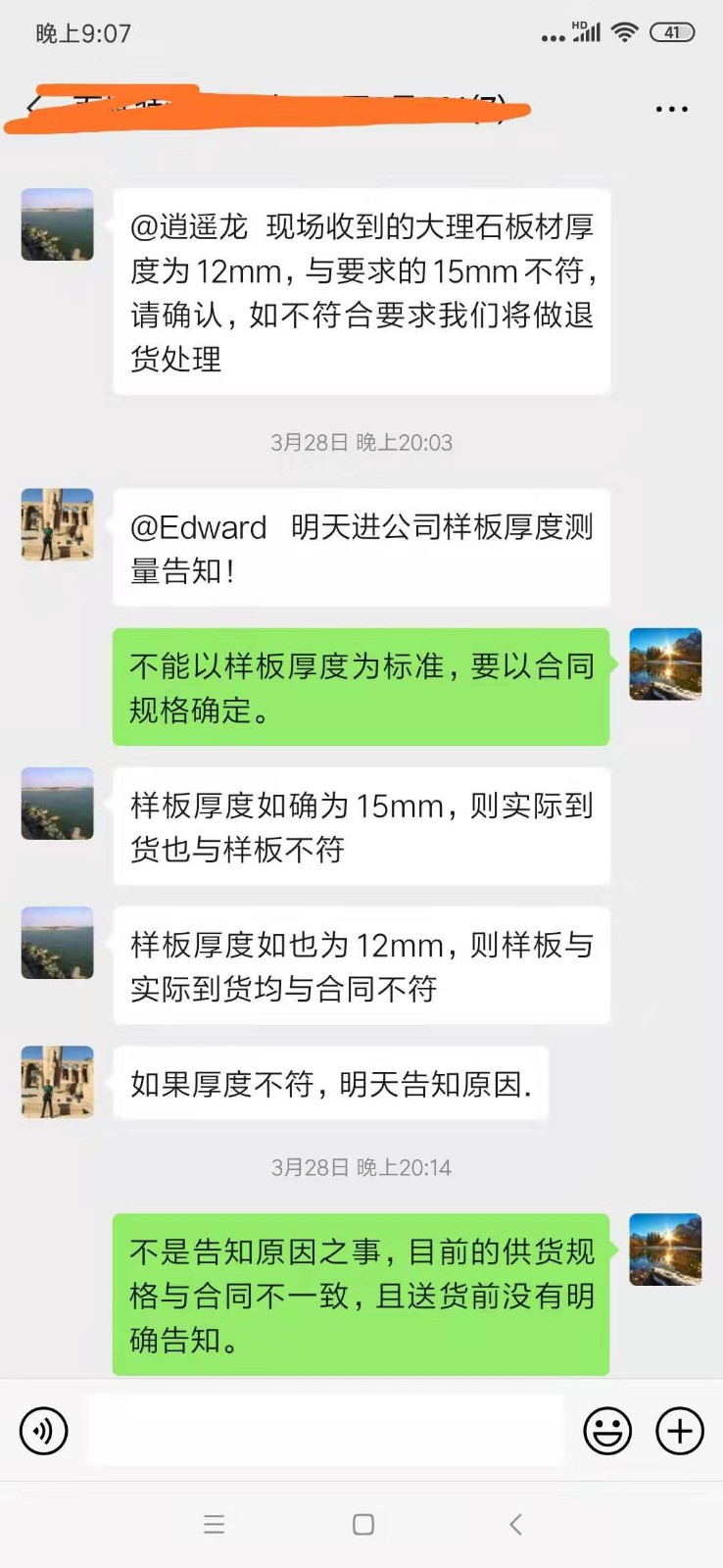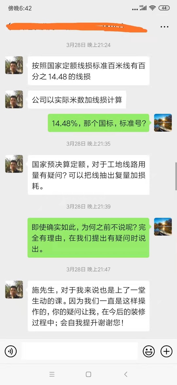 關(guān)于材料損耗的聊天截屏