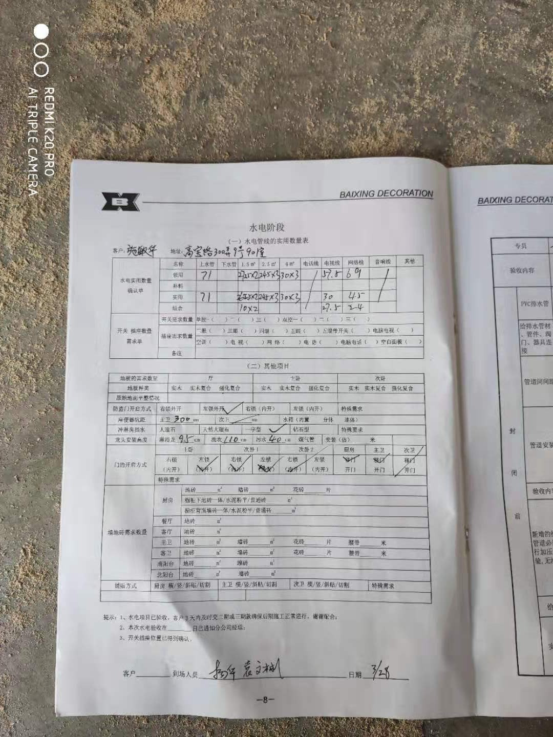 百姓要求簽字確認(rèn)的材料用料清單