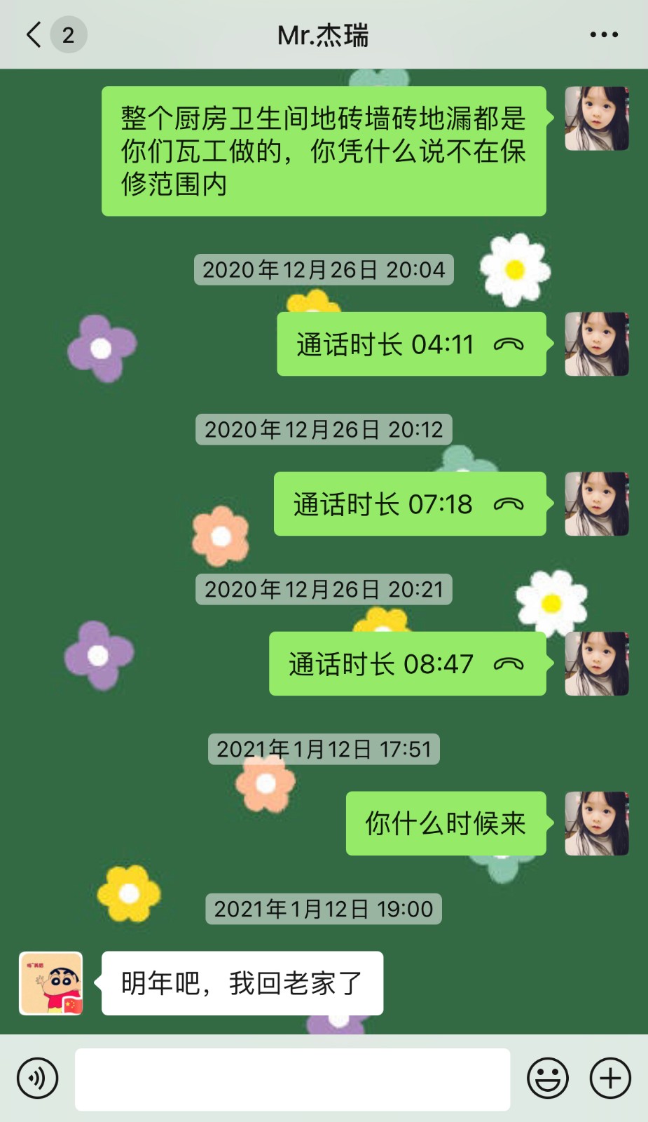 4、工人住在家里導(dǎo)致貼好的瓷磚被刮花。